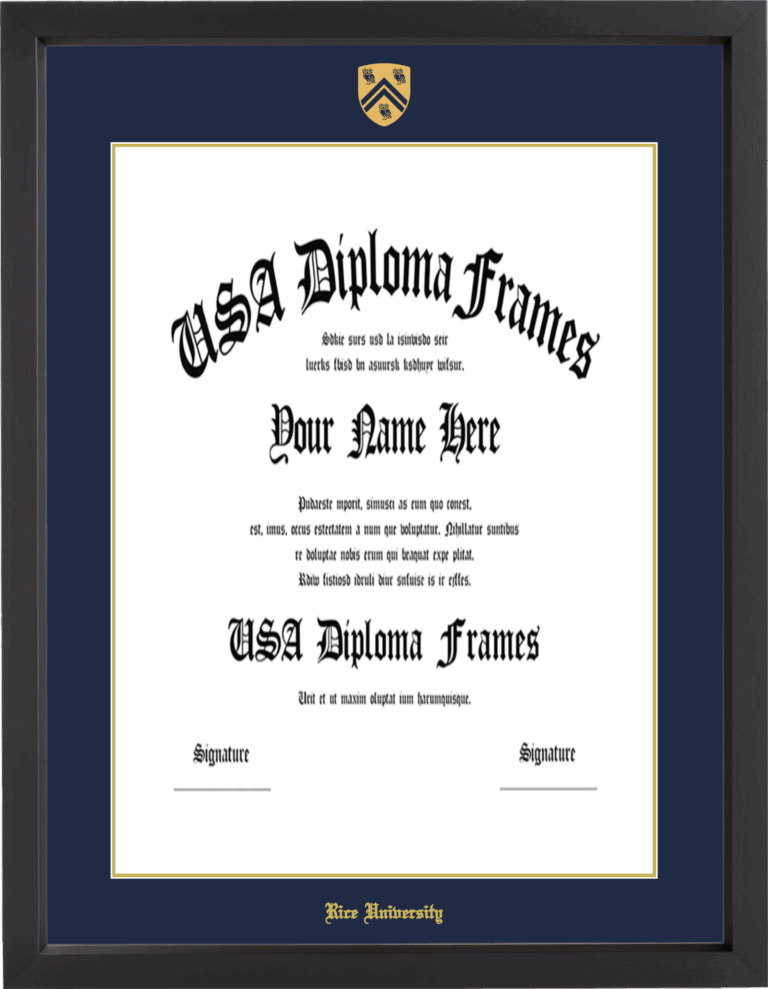 Rice University Diploma Frame – 23×17 – Black Matte – Navy and Gold Mat