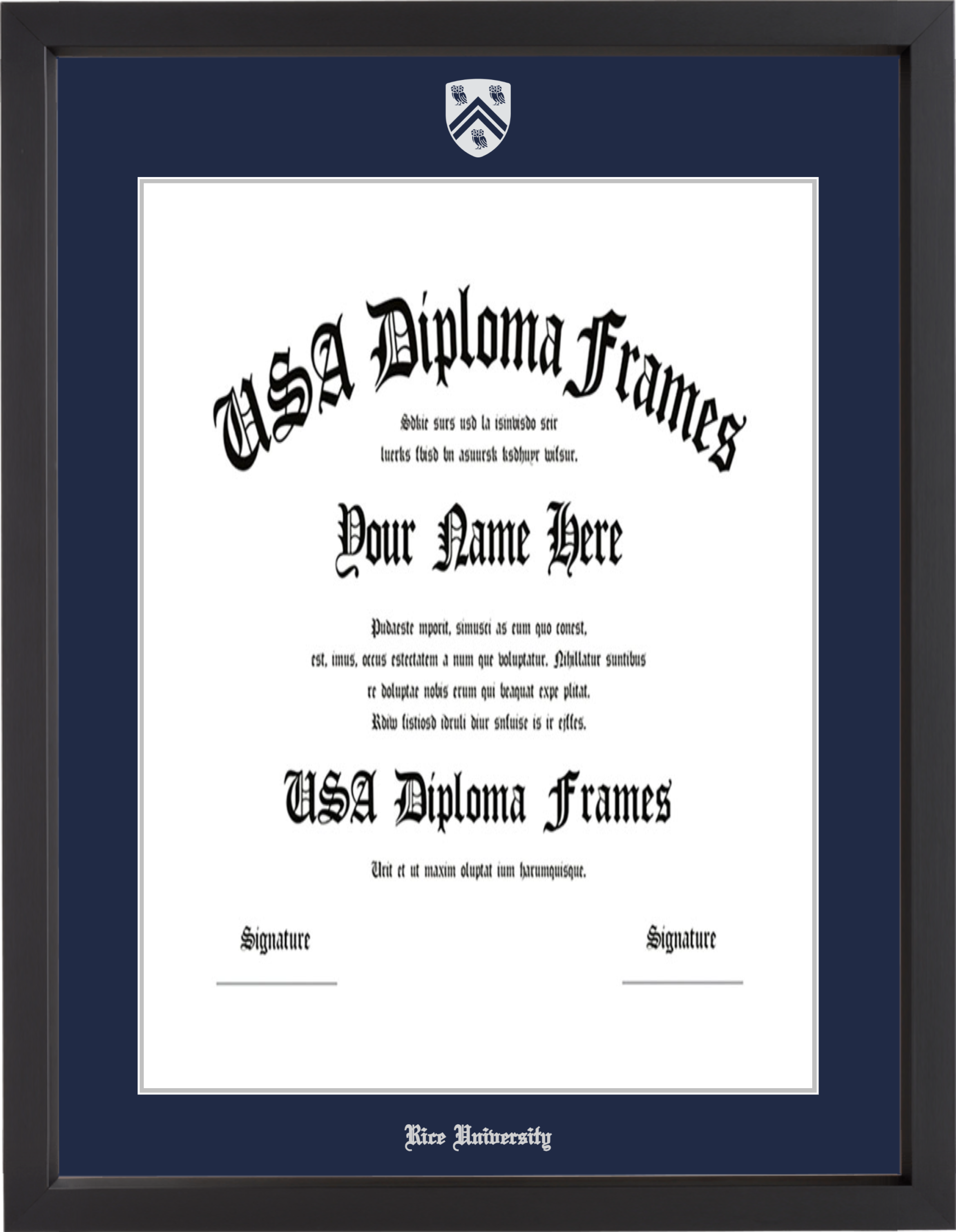 Want to explore more styles? Browse our full range of diploma frame layouts, or visit the Rice University to view options available for your school. Looking for a fully personalized design? Try our custom Frame Builder and create a frame that’s uniquely yours.