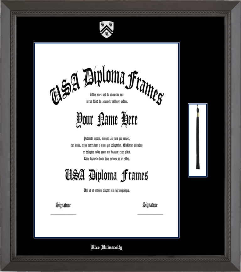 Rice University Diploma Frame with Tassel – 23×17 – Black Rope – Black and Navy Mat – Silver Seal