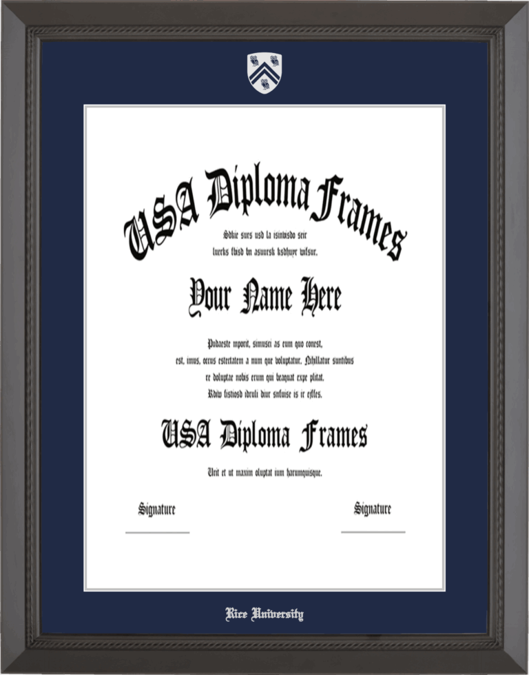 Want to explore more styles? Browse our full range of diploma frame layouts, or visit the Rice University to view options available for your school. Looking for a fully personalized design? Try our custom Frame Builder and create a frame that’s uniquely yours.