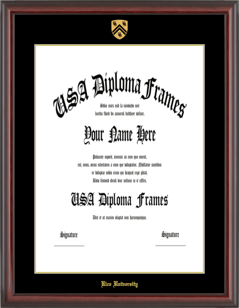 Want to explore more styles? Browse our full range of diploma frame layouts, or visit the Rice University to view options available for your school. Looking for a fully personalized design? Try our custom Frame Builder and create a frame that’s uniquely yours.