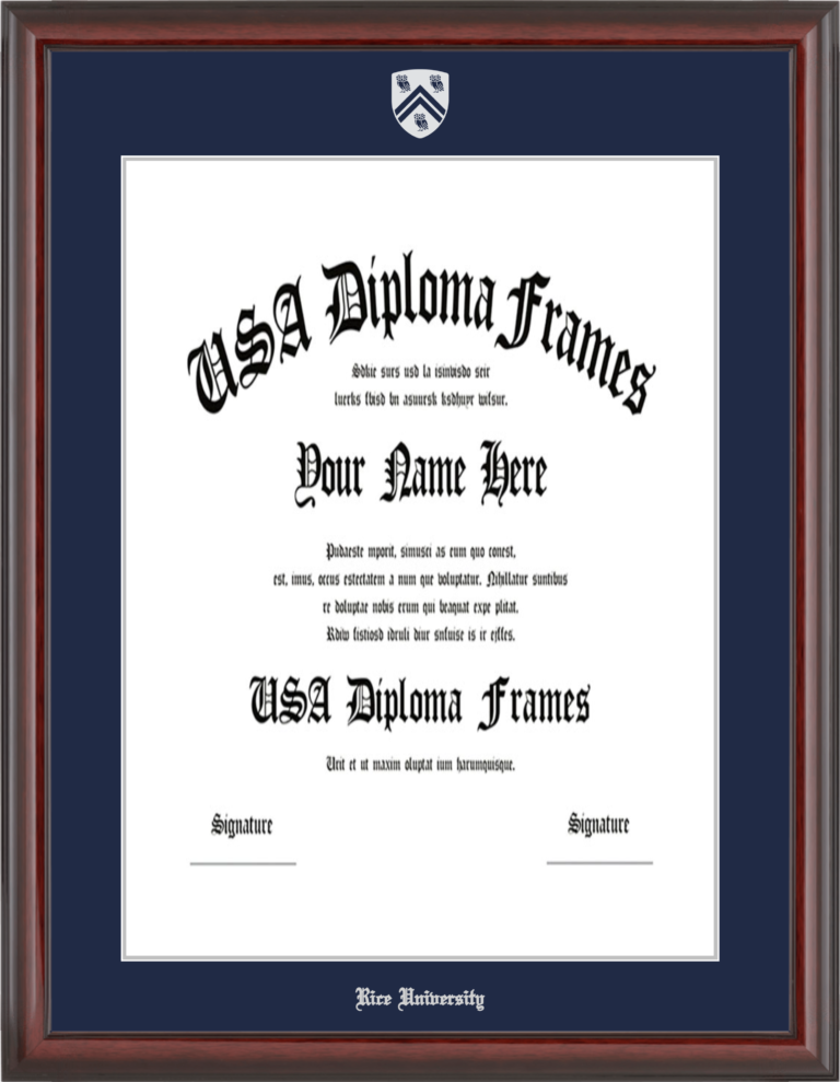 Want to explore more styles? Browse our full range of diploma frame layouts, or visit the Rice University to view options available for your school. Looking for a fully personalized design? Try our custom Frame Builder and create a frame that’s uniquely yours.