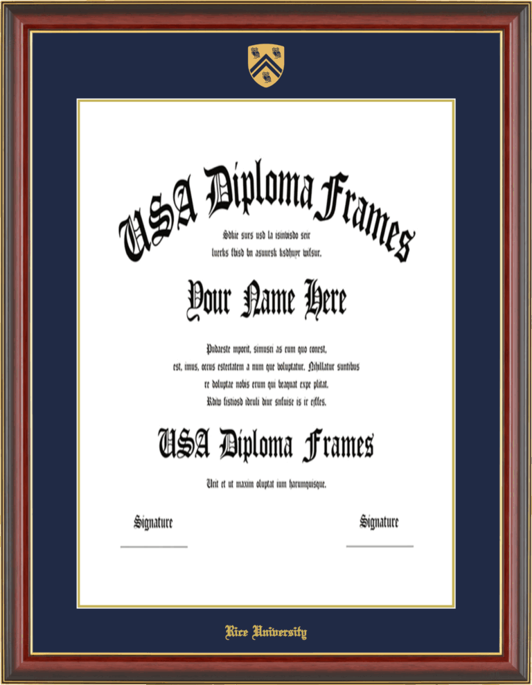 Want to explore more styles? Browse our full range of diploma frame layouts, or visit the Rice University to view options available for your school. Looking for a fully personalized design? Try our custom Frame Builder and create a frame that’s uniquely yours.