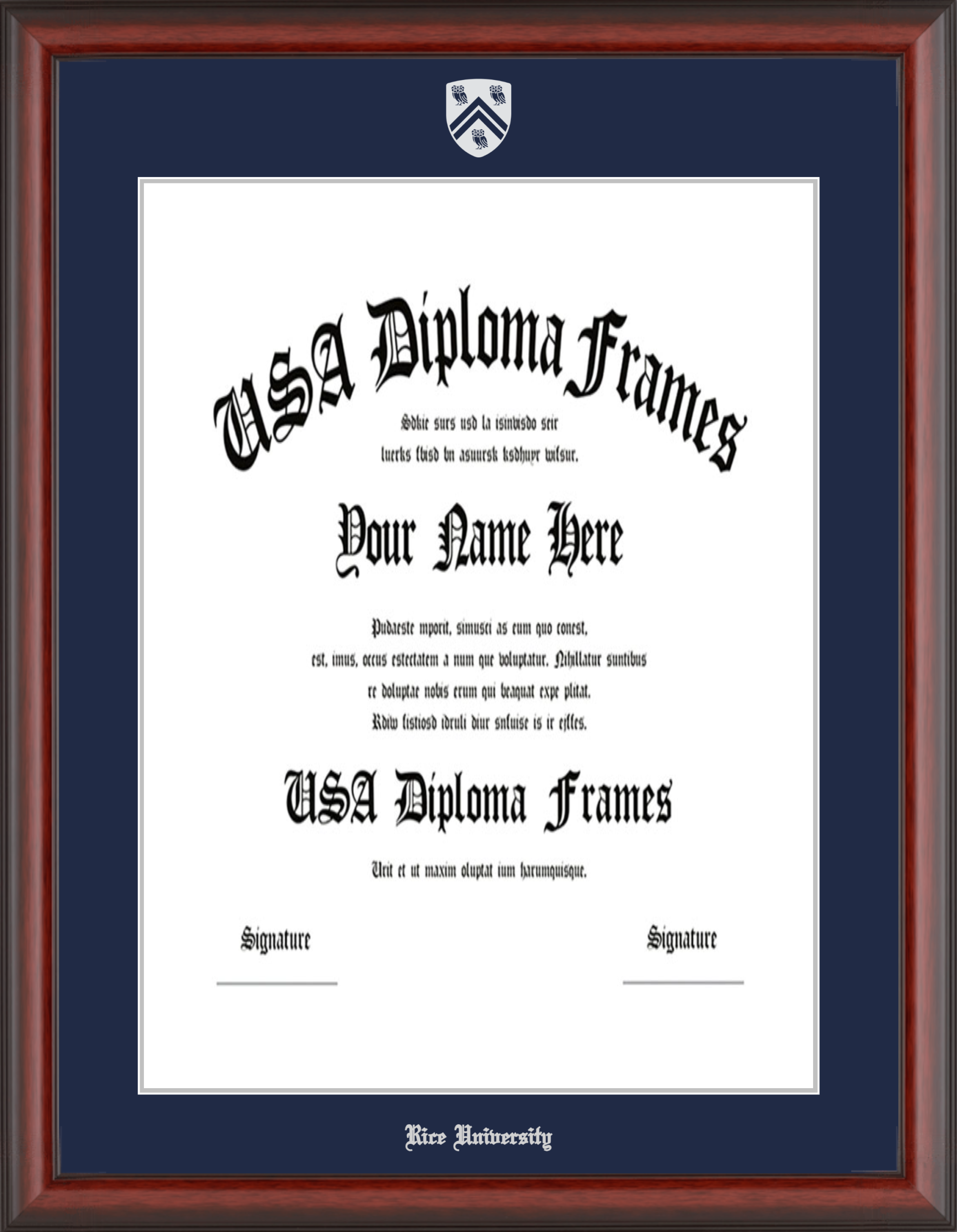 Want to explore more styles? Browse our full range of diploma frame layouts, or visit the Rice University to view options available for your school. Looking for a fully personalized design? Try our custom Frame Builder and create a frame that’s uniquely yours.