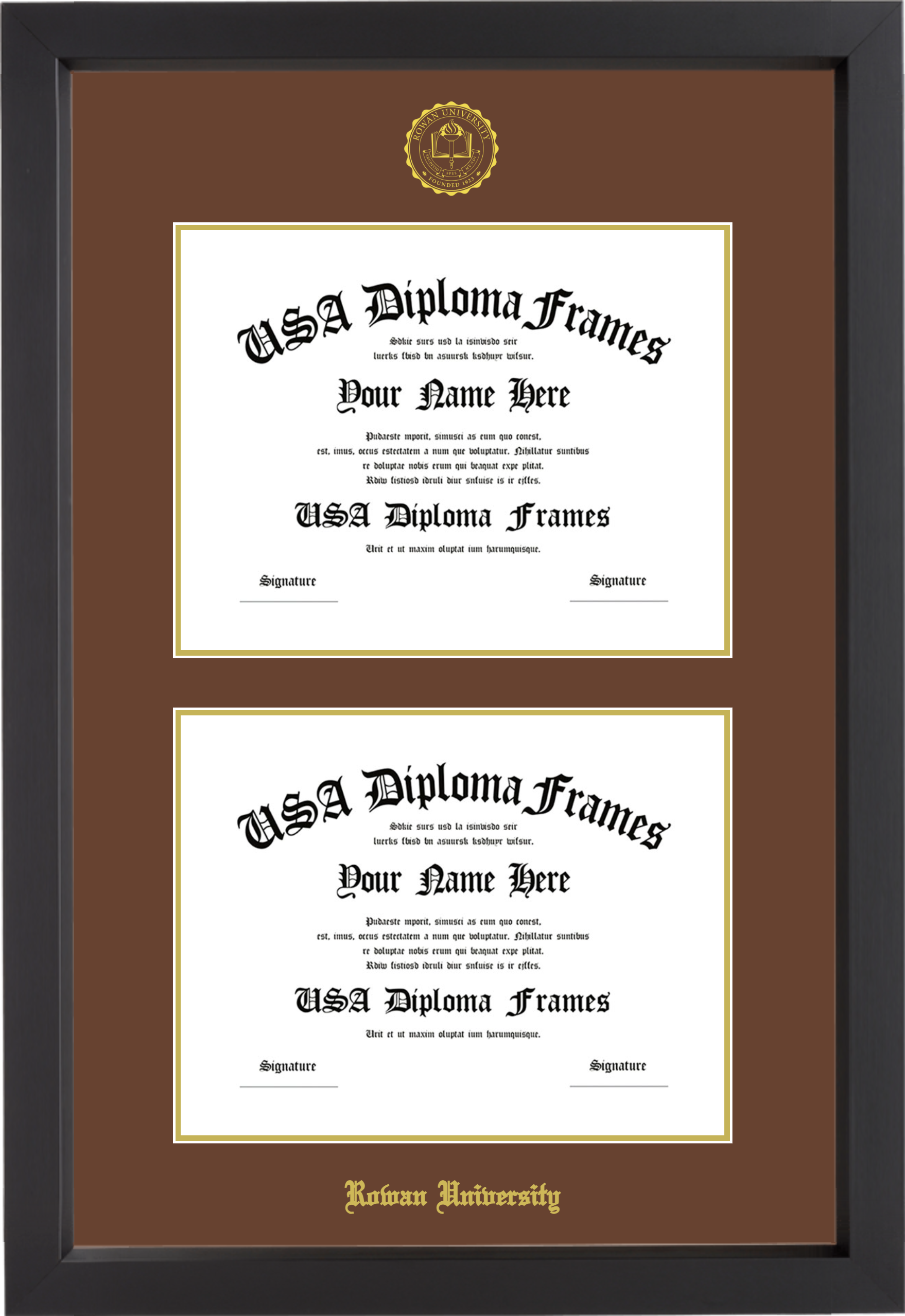 Want to explore more styles? Browse our full range of diploma frame layouts, or visit the Rowan University to view options available for your school. Looking for a fully personalized design? Try our custom Frame Builder and create a frame that’s uniquely yours.