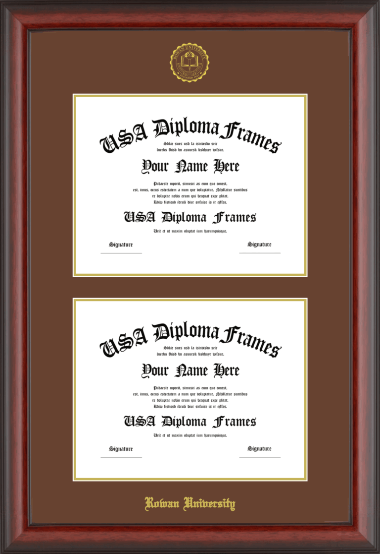 Rowan University Double Diploma Frame – Double Document – Cherry Mahogany Matte – Brown and Gold Mat