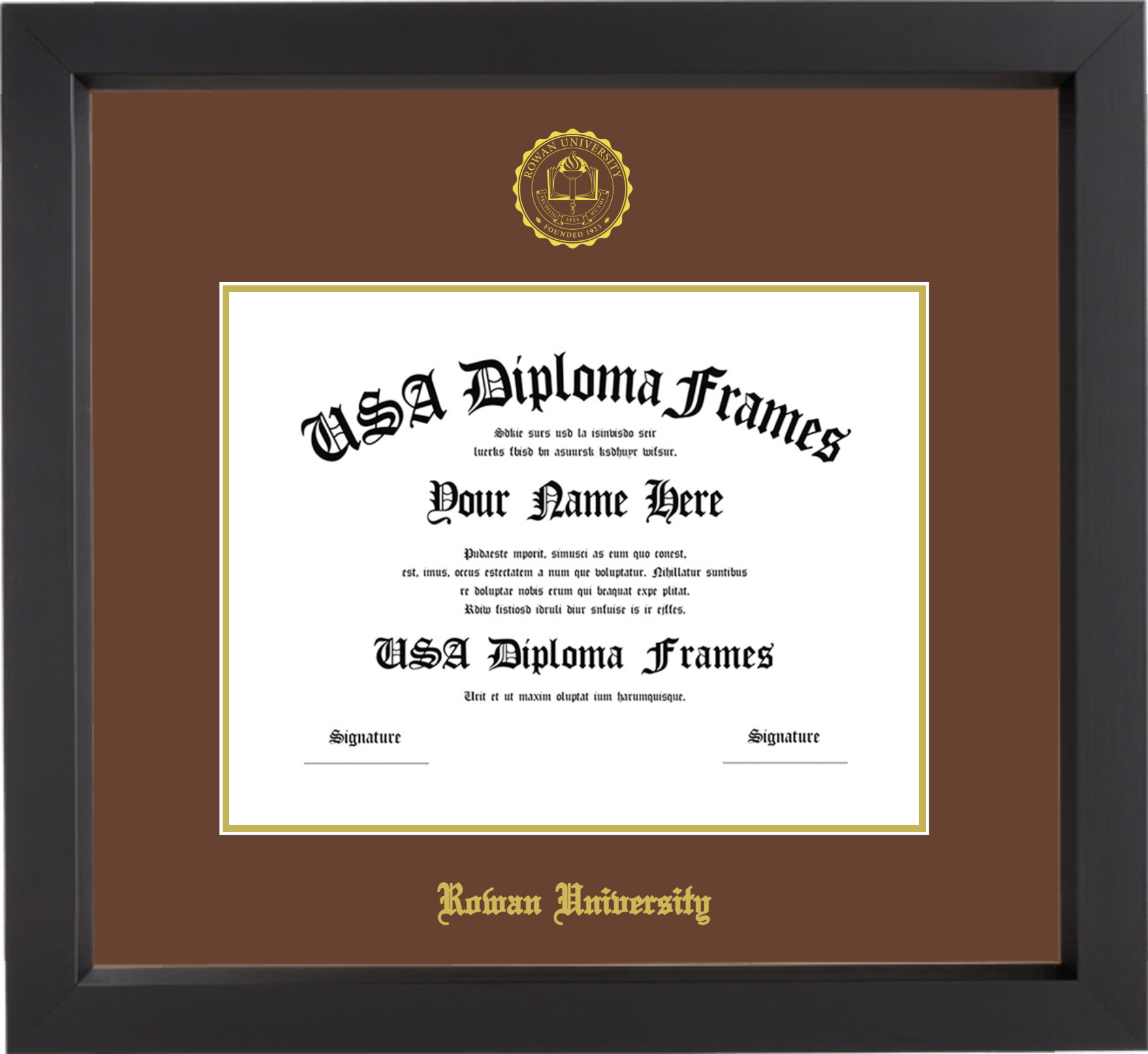 Rowan University Diploma Frame – Black Matte – Brown and Gold Mat