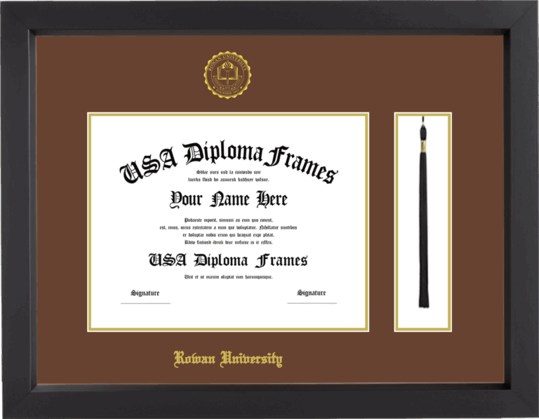 Rowan University Diploma Frame with Tassel – Black Matte – Brown and Gold Mat