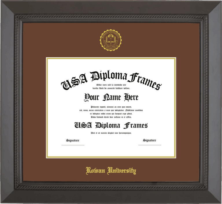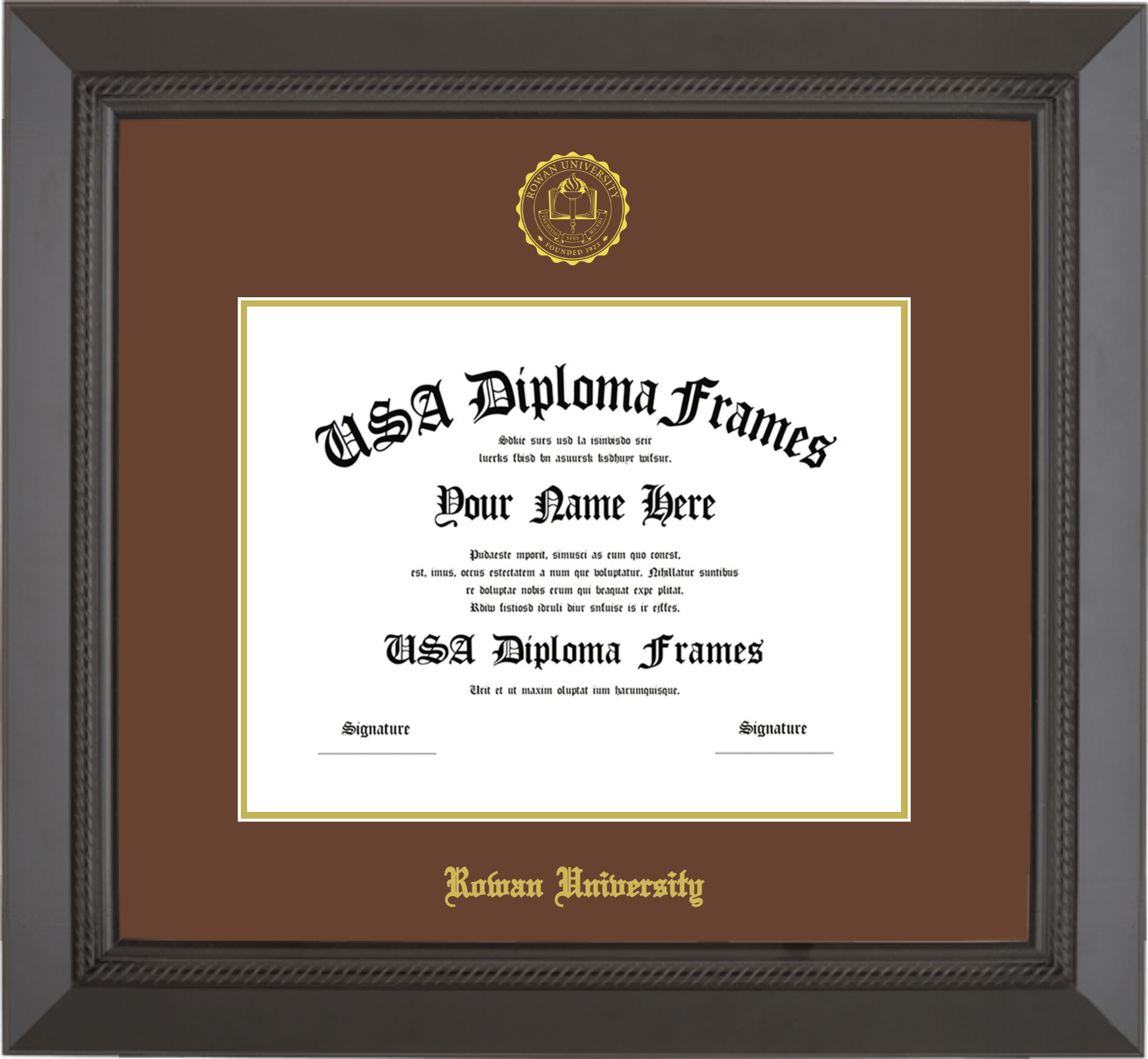 Rowan University Diploma Frame – Black Rope – Brown and Gold Mat