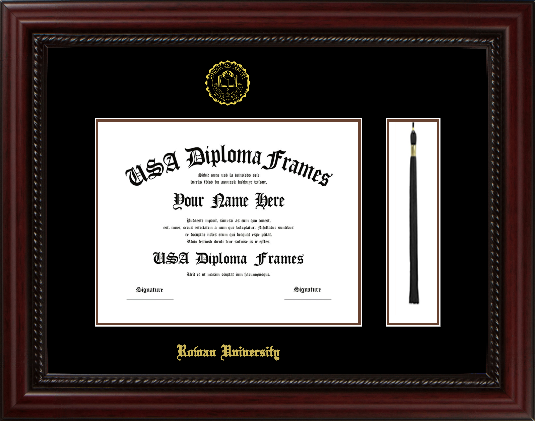 Rowan University Diploma Frame with Tassel – Executive Cherry Rope – Black and Brown Mat