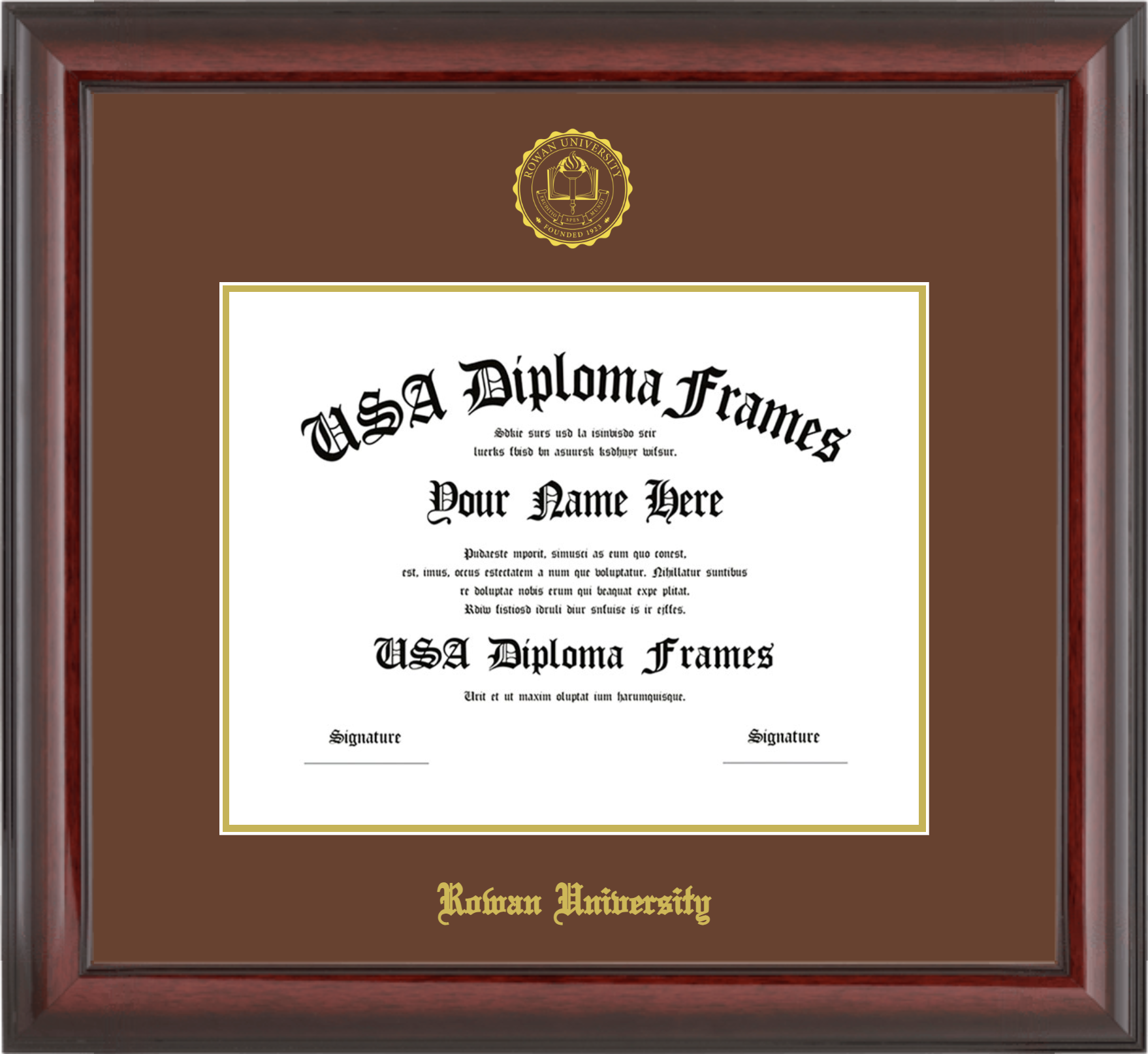 Rowan University – Single Horizontal Document ( Diploma ) – Cherry Mahogany Glossy – Brown Mat – Gold Accent Mat – With Seal(University Seal Gold) – With Gold Embossing (Rowan University)