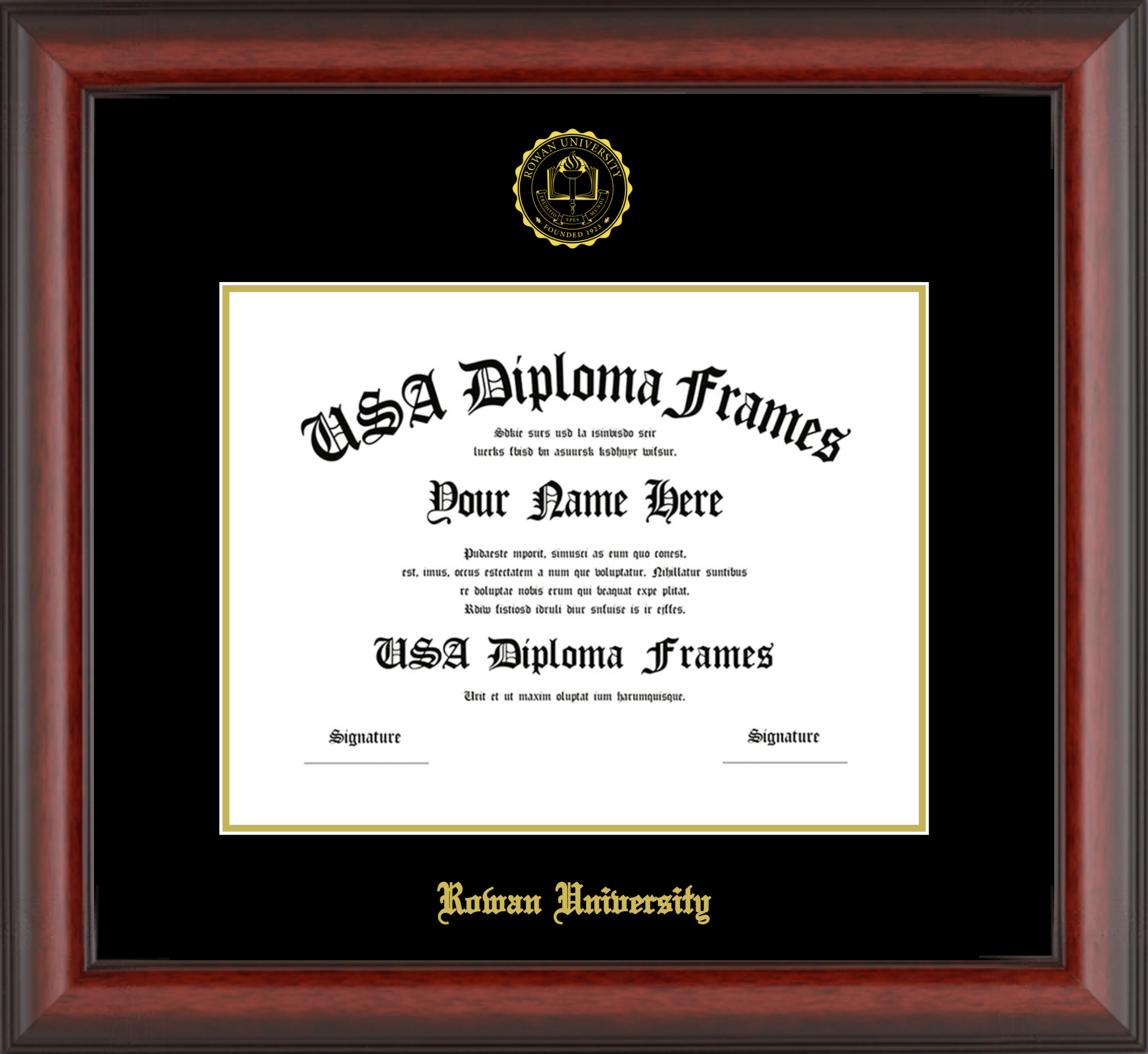 Rowan University Diploma Frame – Cherry Mahogany Matte – Black and Gold Mat