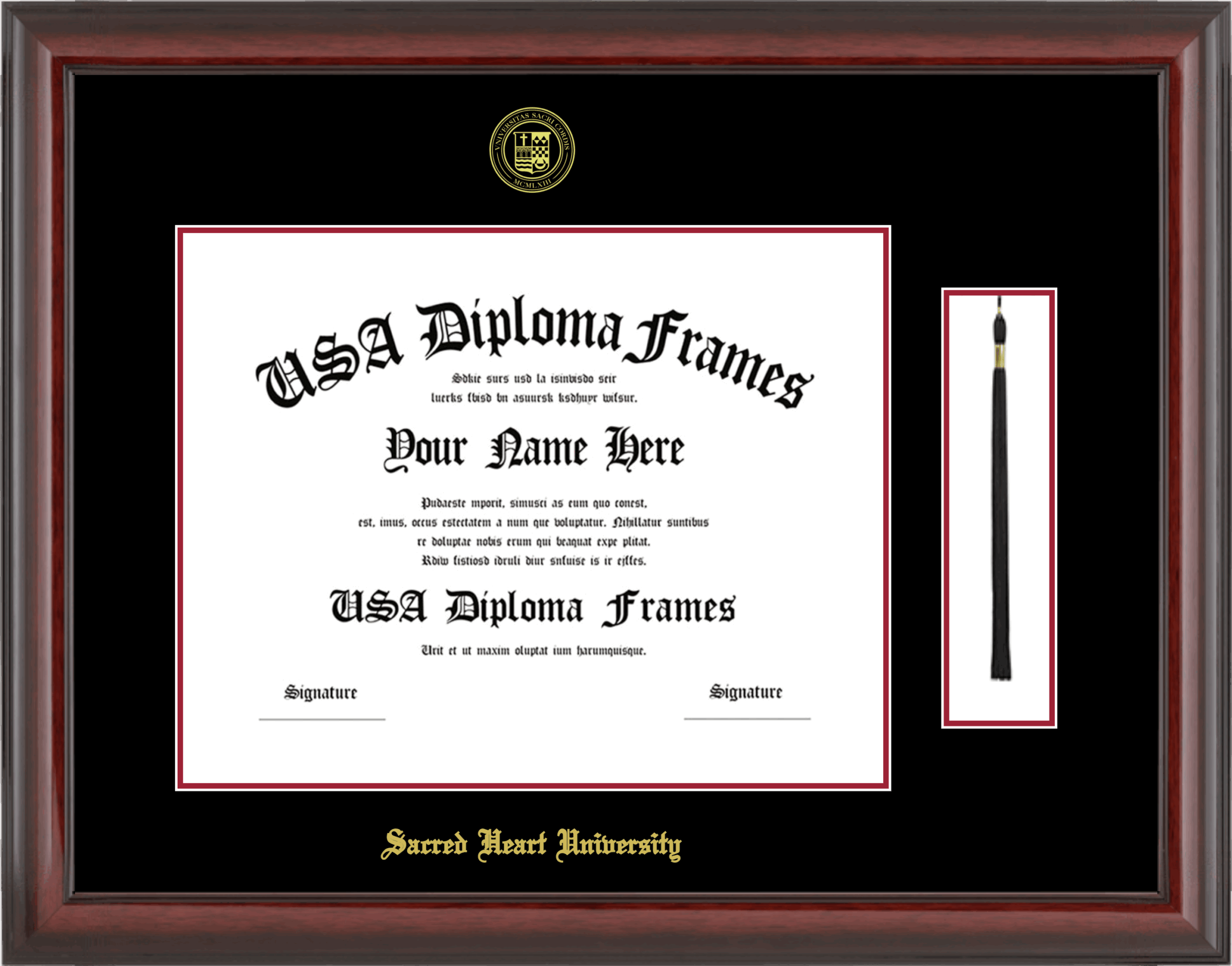 Sacred Heart University Diploma Frame with Tassel – Cherry Mahogany Glossy – Black and Crimson Mat