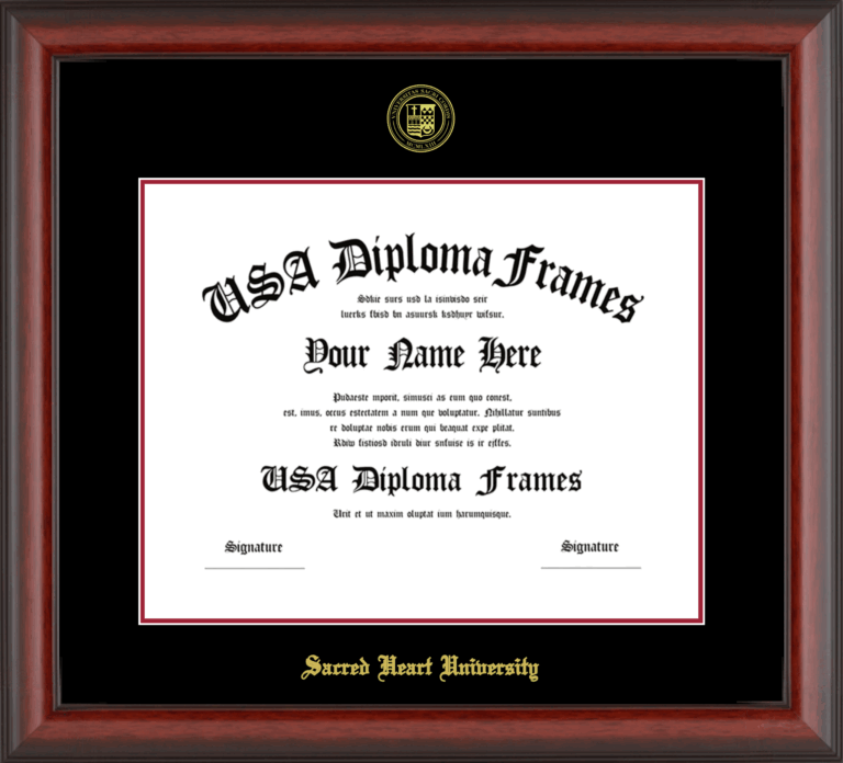 Want to explore more styles? Browse our full range of diploma frame layouts, or visit the Sacred Heart University to view options available for your school. Looking for a fully personalized design? Try our custom Frame Builder and create a frame that’s uniquely yours.