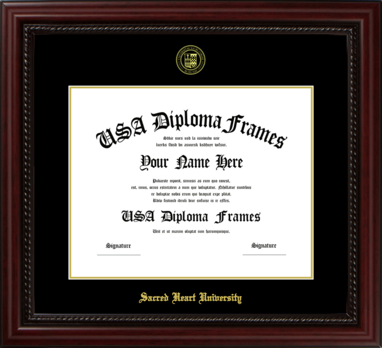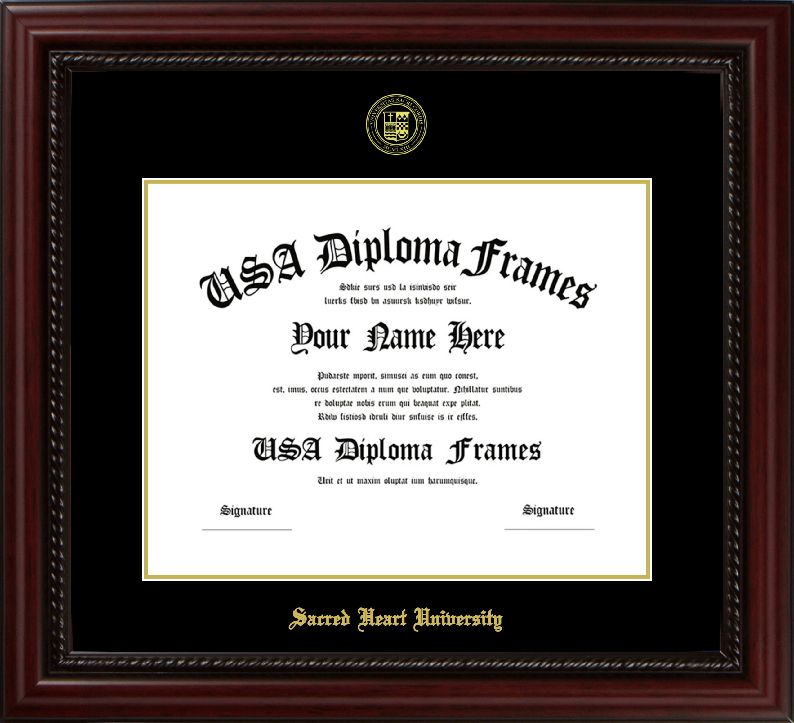 Sacred Heart University Diploma Frame – Executive Cherry Rope – Black and Gold Mat