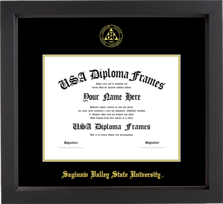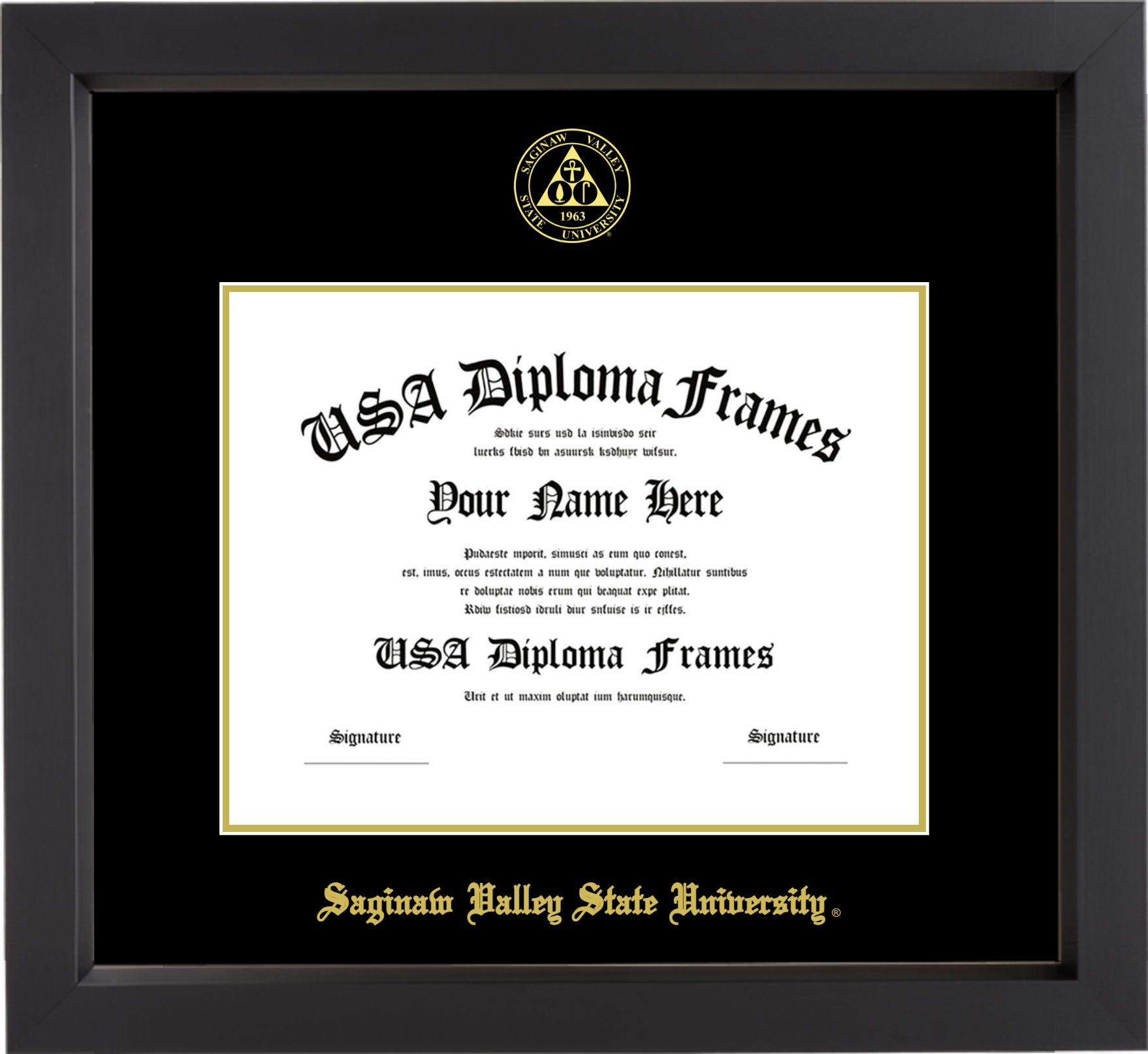 Saginaw Valley State University Diploma Frame – Black Matte – Black and Gold Mat