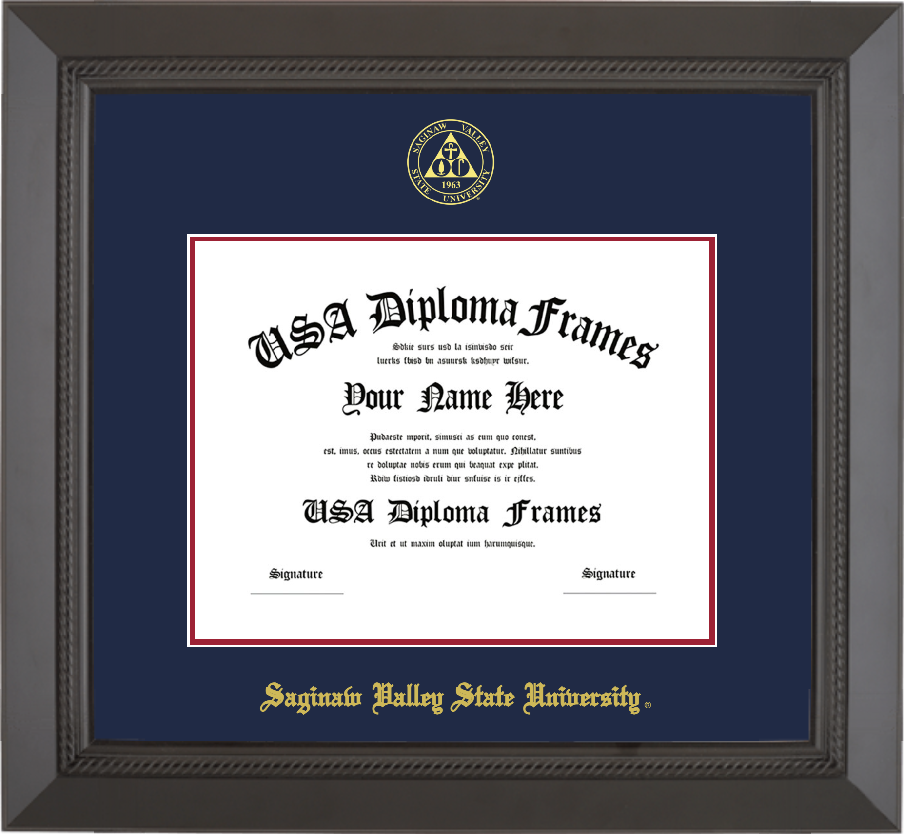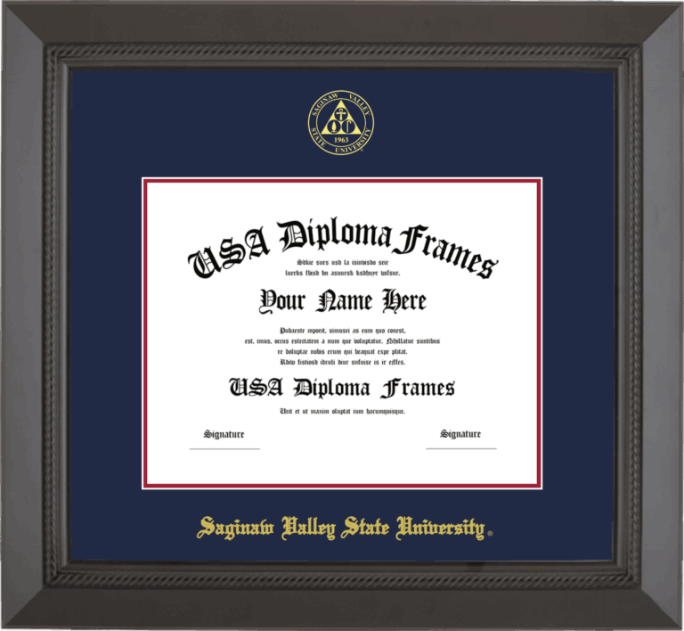 Want to explore more styles? Browse our full range of diploma frame layouts, or visit the Saginaw Valley State University to view options available for your school. Looking for a fully personalized design? Try our custom Frame Builder and create a frame that’s uniquely yours.