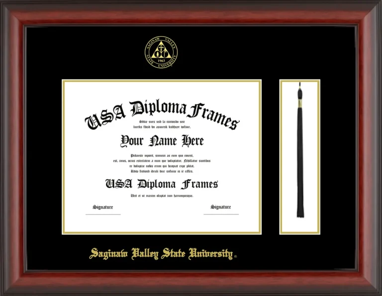 Want to explore more styles? Browse our full range of diploma frame layouts, or visit the Saginaw Valley State University to view options available for your school. Looking for a fully personalized design? Try our custom Frame Builder and create a frame that’s uniquely yours.