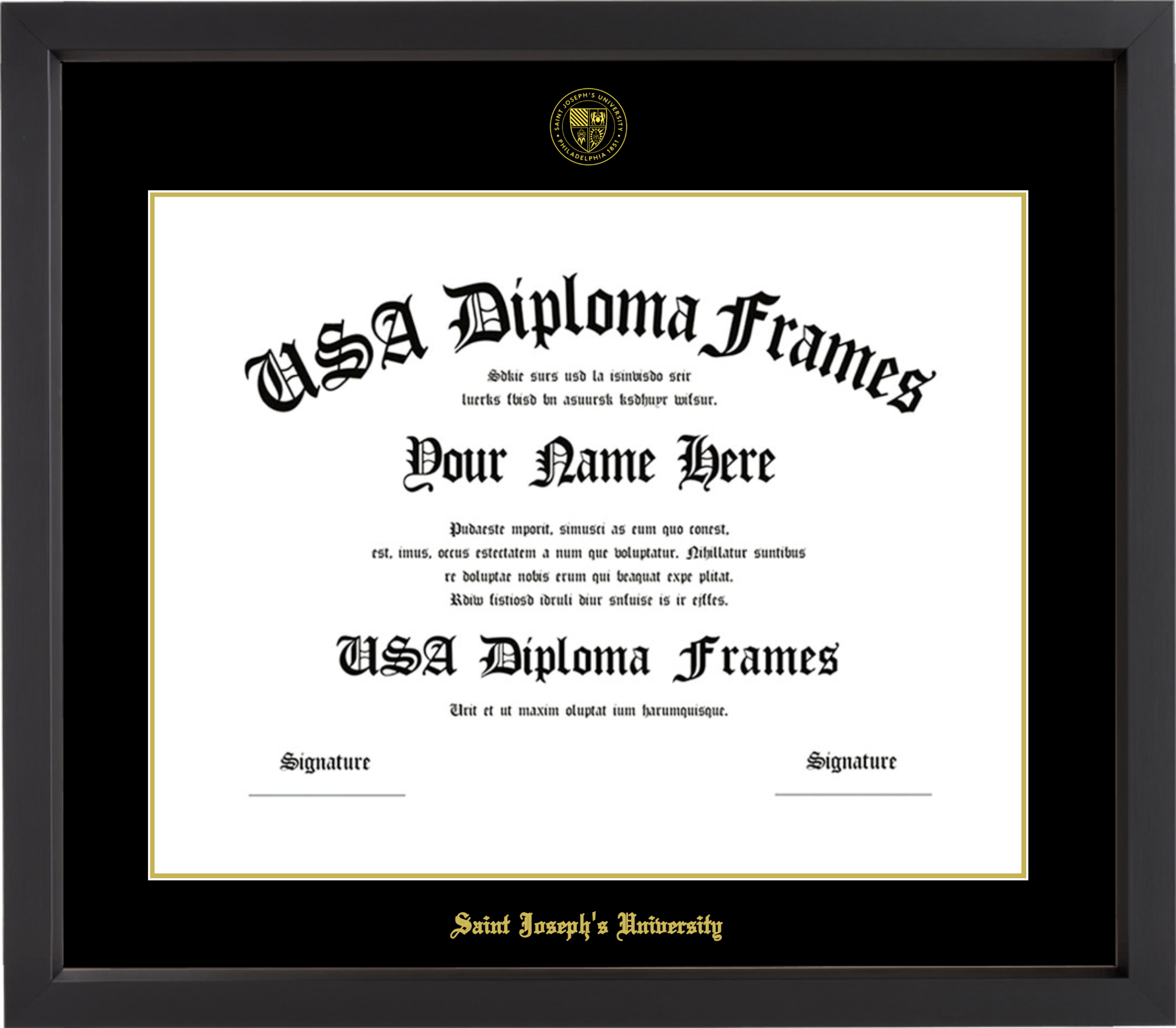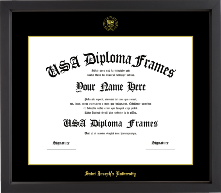 Saint Joseph’s University (PA) Diploma Frame – Black Matte – Black and Gold Mat