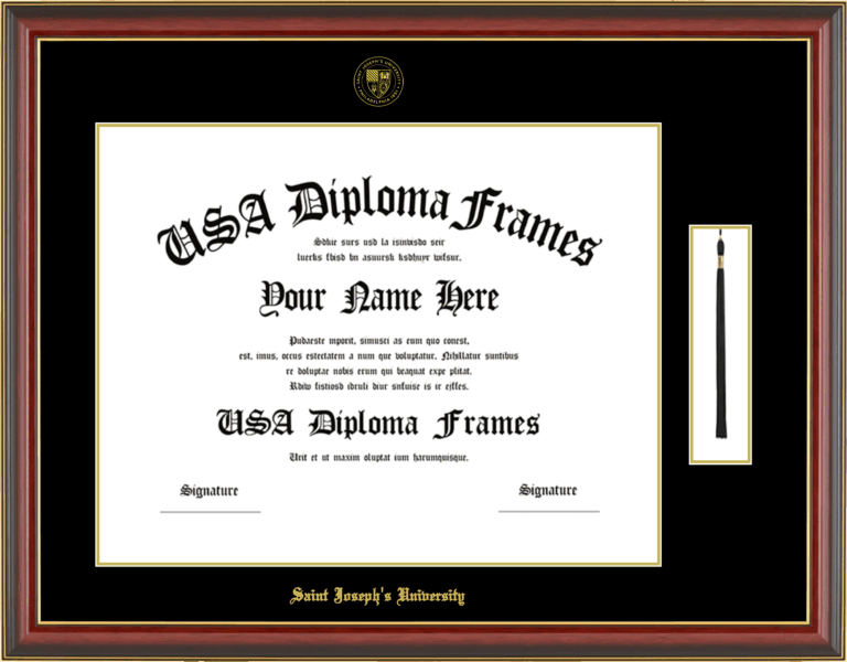 Saint Joseph’s University Diploma Frame with Tassel – Cherry Mahogany Gold Trim Glossy – Black and Gold Mat – 16×20.5