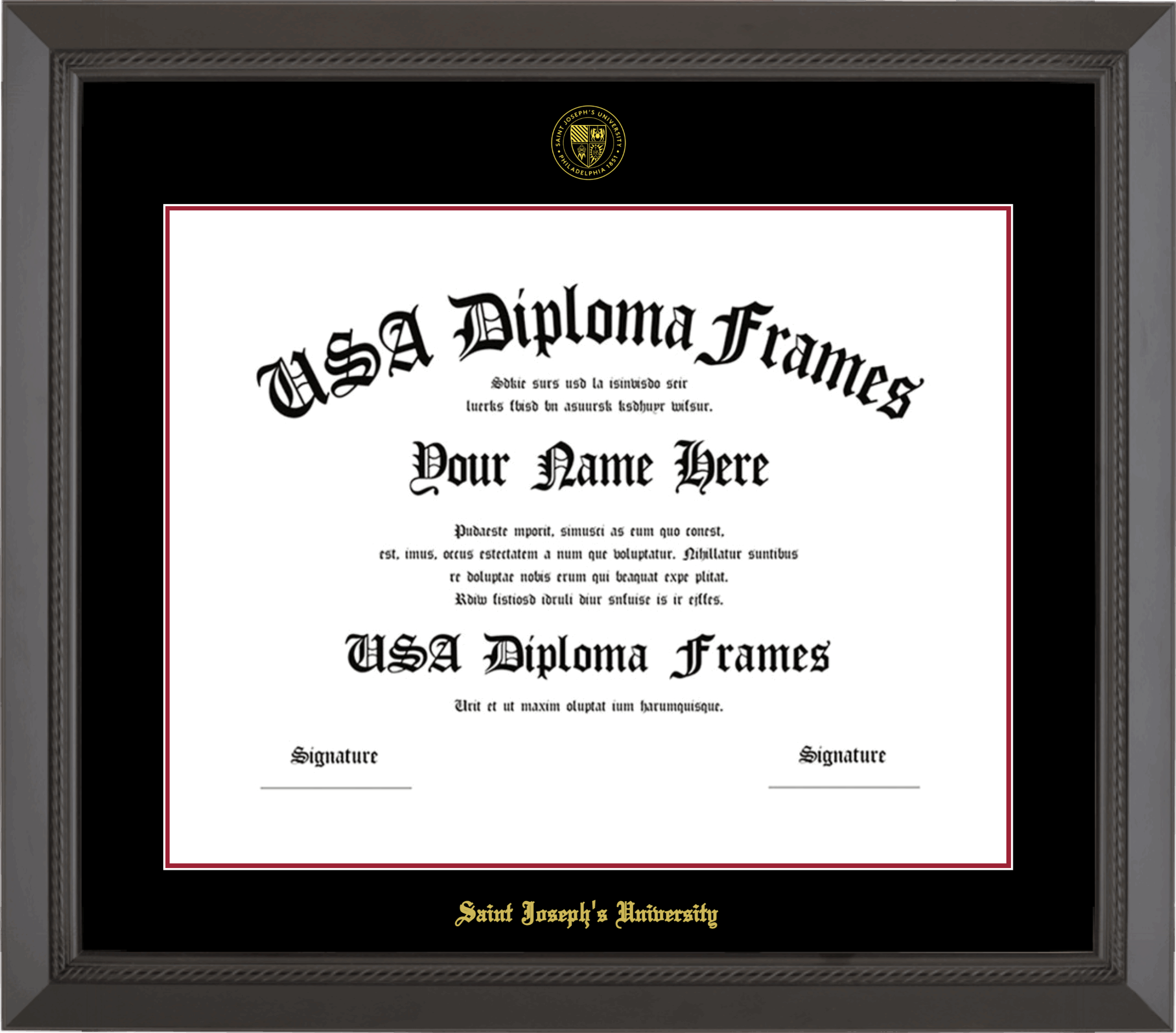Saint Joseph’s University Diploma Frame – Black Rope – Black and Crimson Mat – 16×20.5
