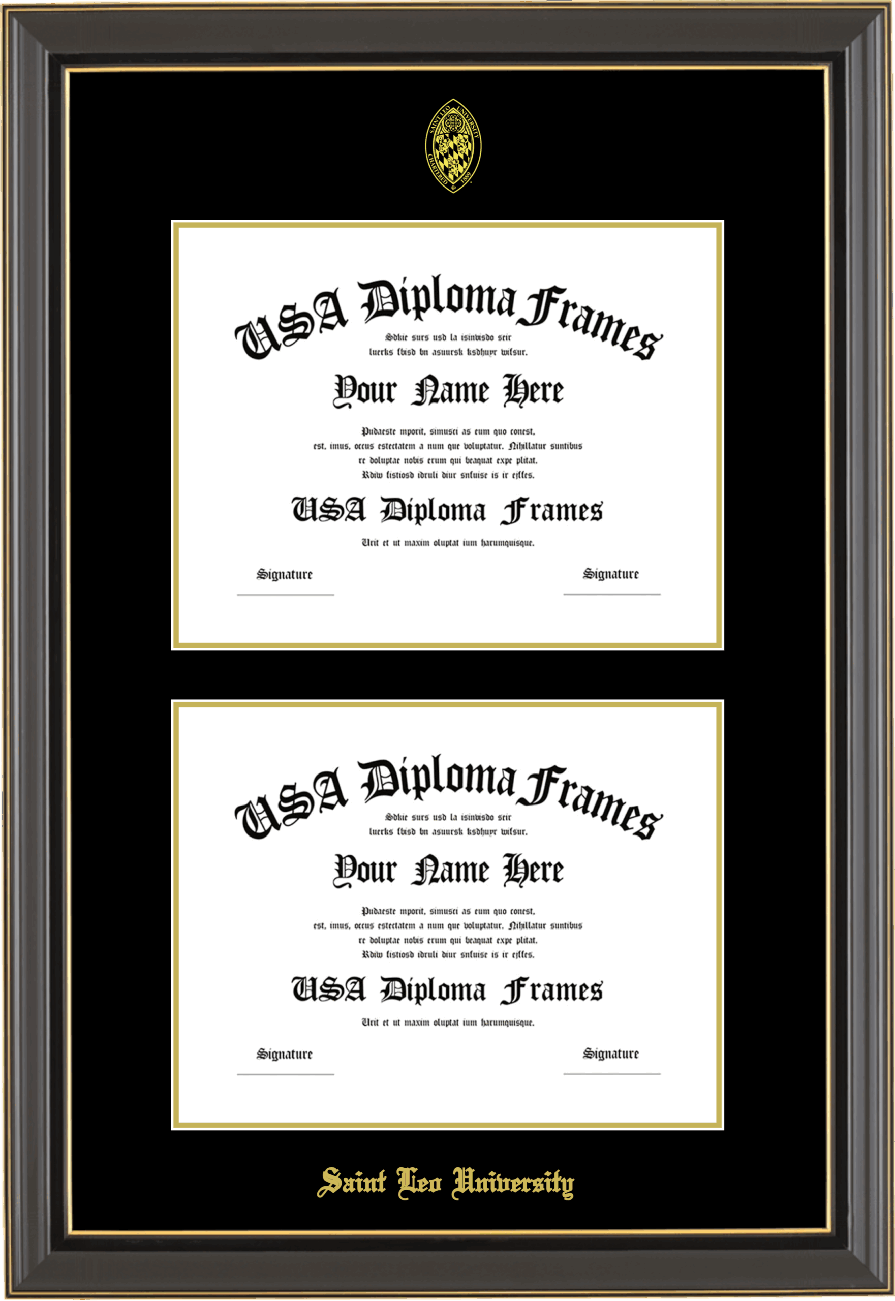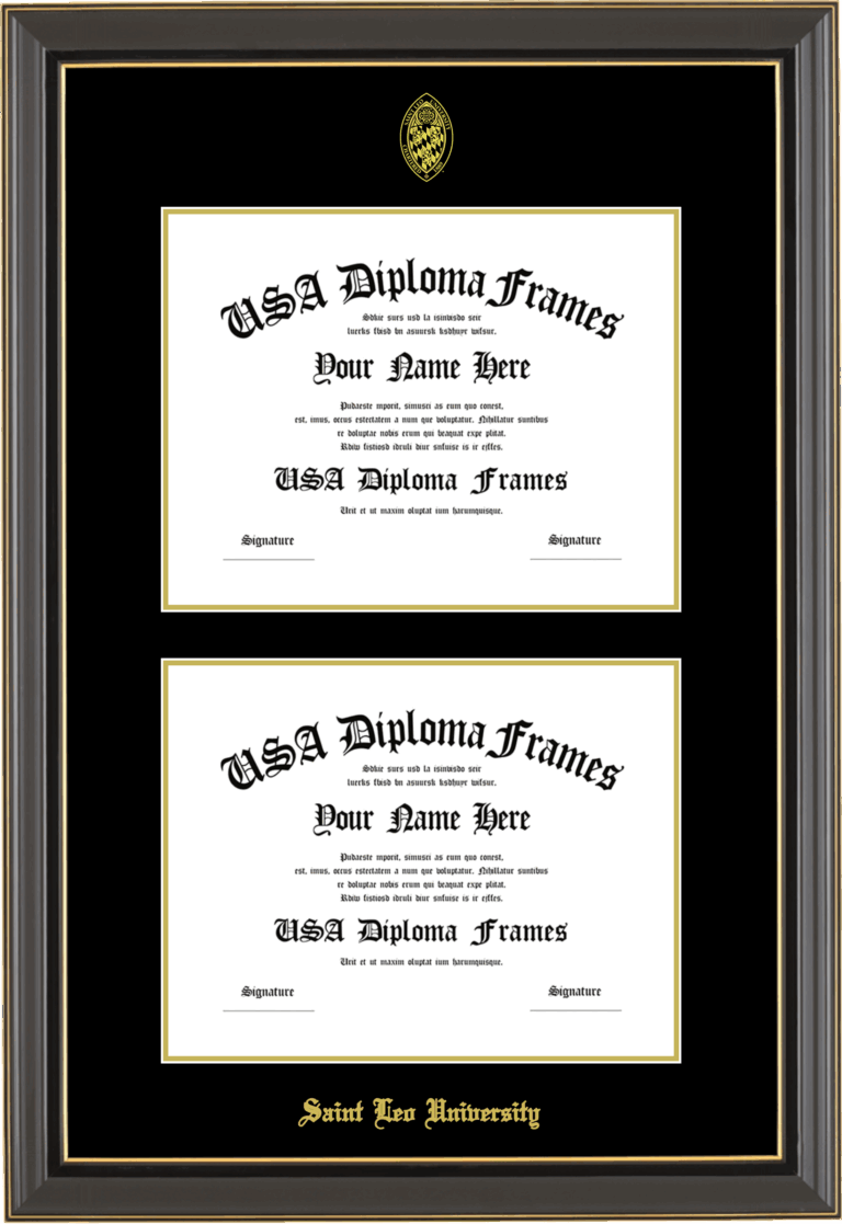 Saint Leo University Double Diploma Frame – Double Document – Black Gold Trim Glossy – Black and Gold Mat