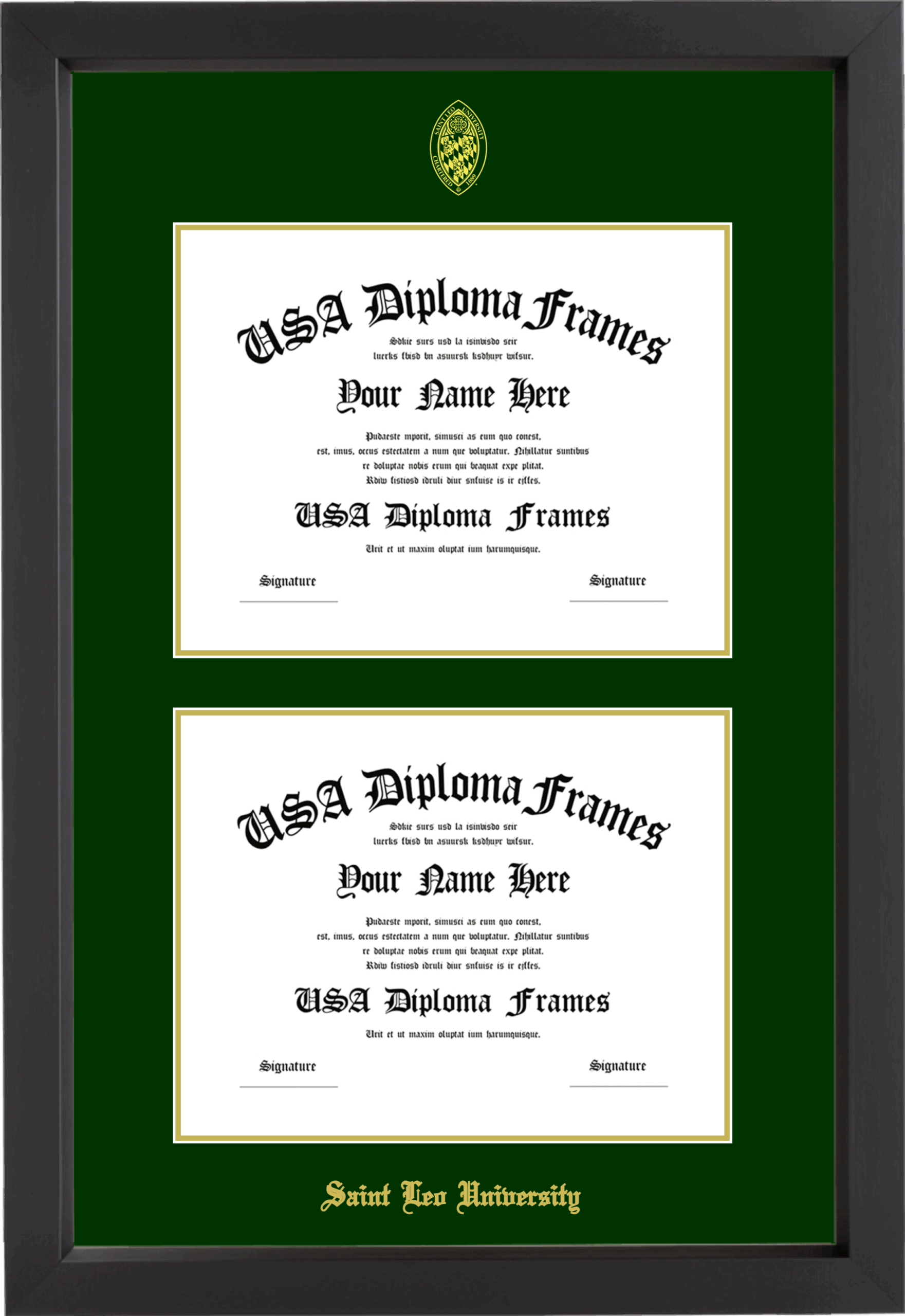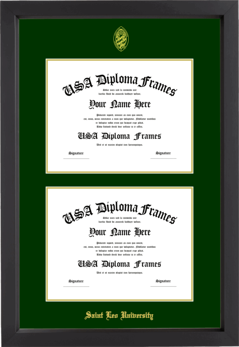 Saint Leo University Double Diploma Frame – Double Document – Black Matte – Winter Green and Gold Mat