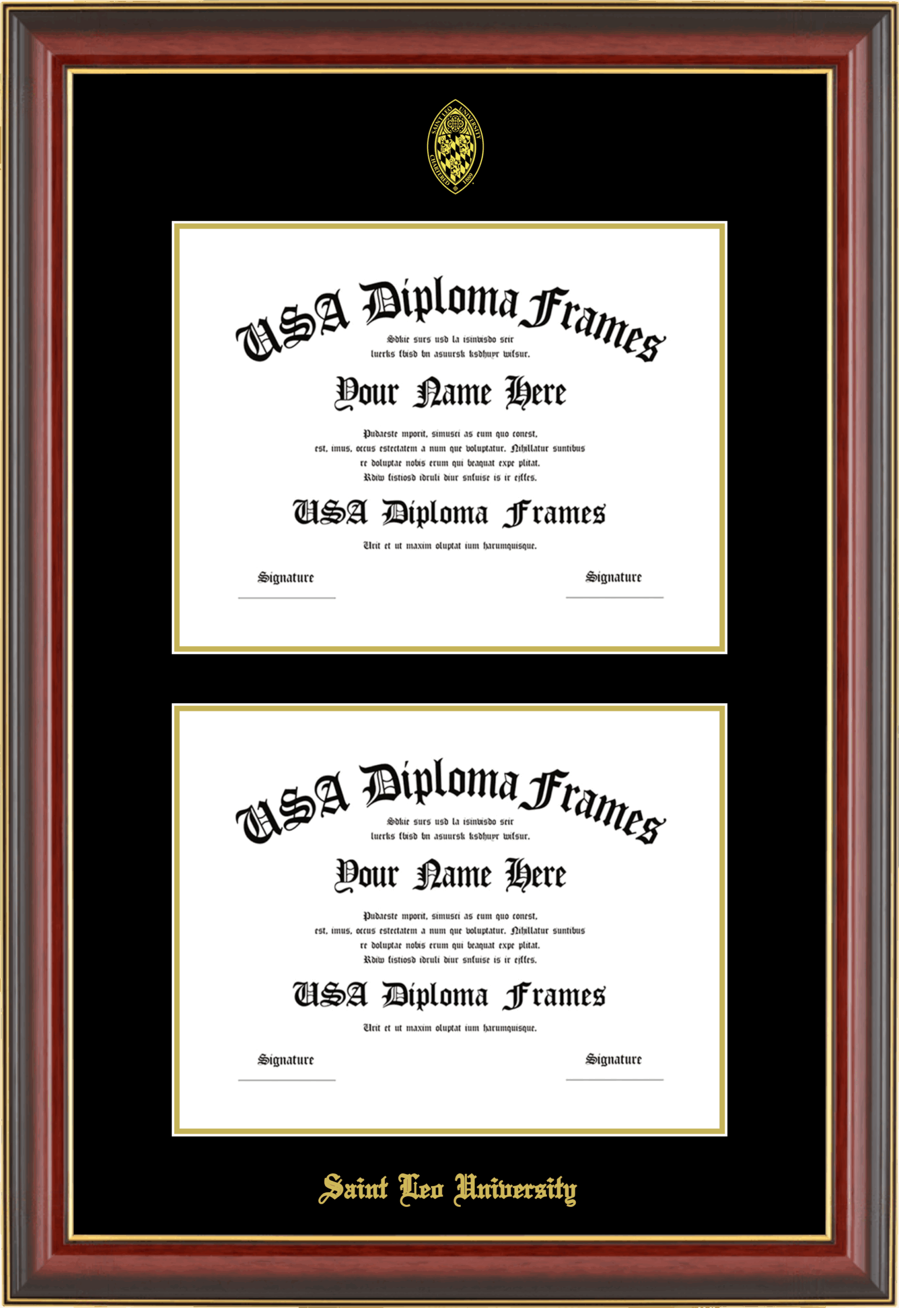 Saint Leo University Double Diploma Frame – Double Document – Cherry Mahogany Gold Trim Glossy – Black and Gold Mat