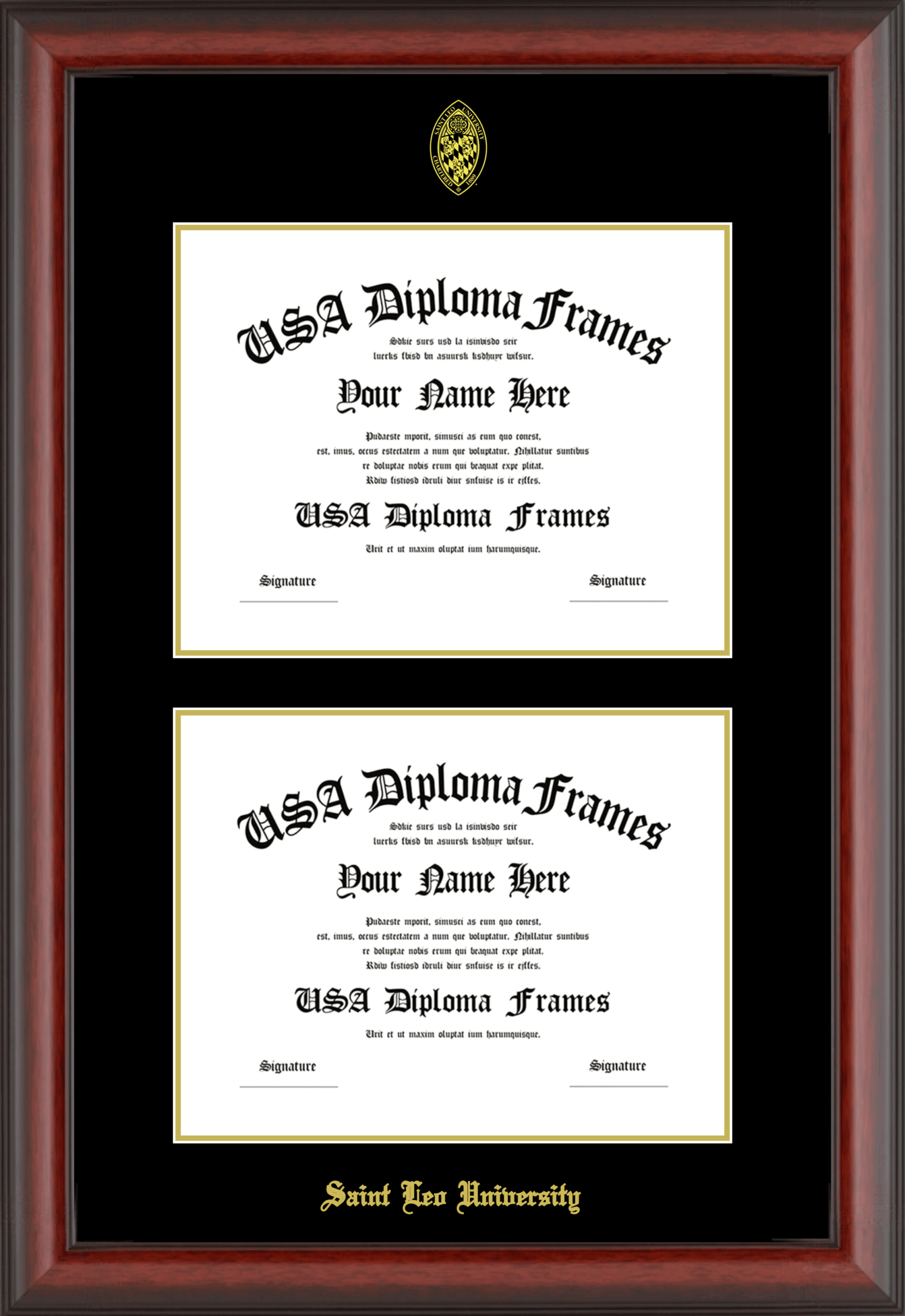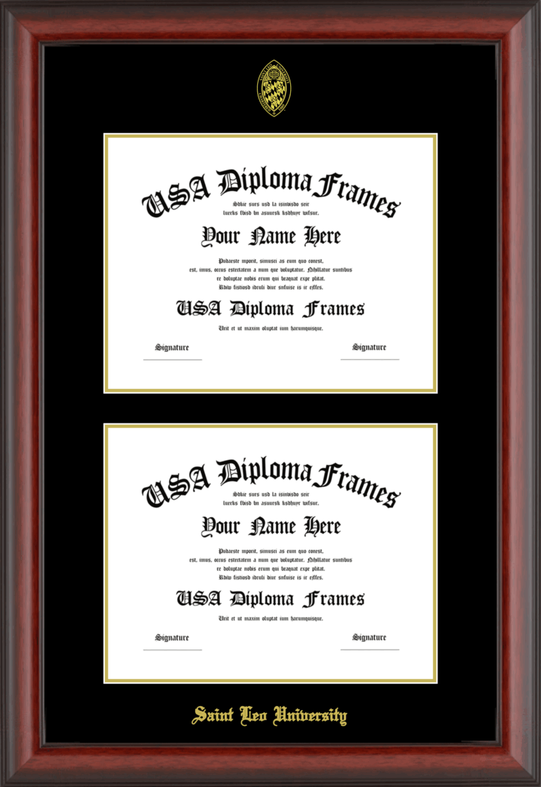 Saint Leo University Double Diploma Frame – Double Document – Cherry Mahogany Matte – Black and Gold Mat