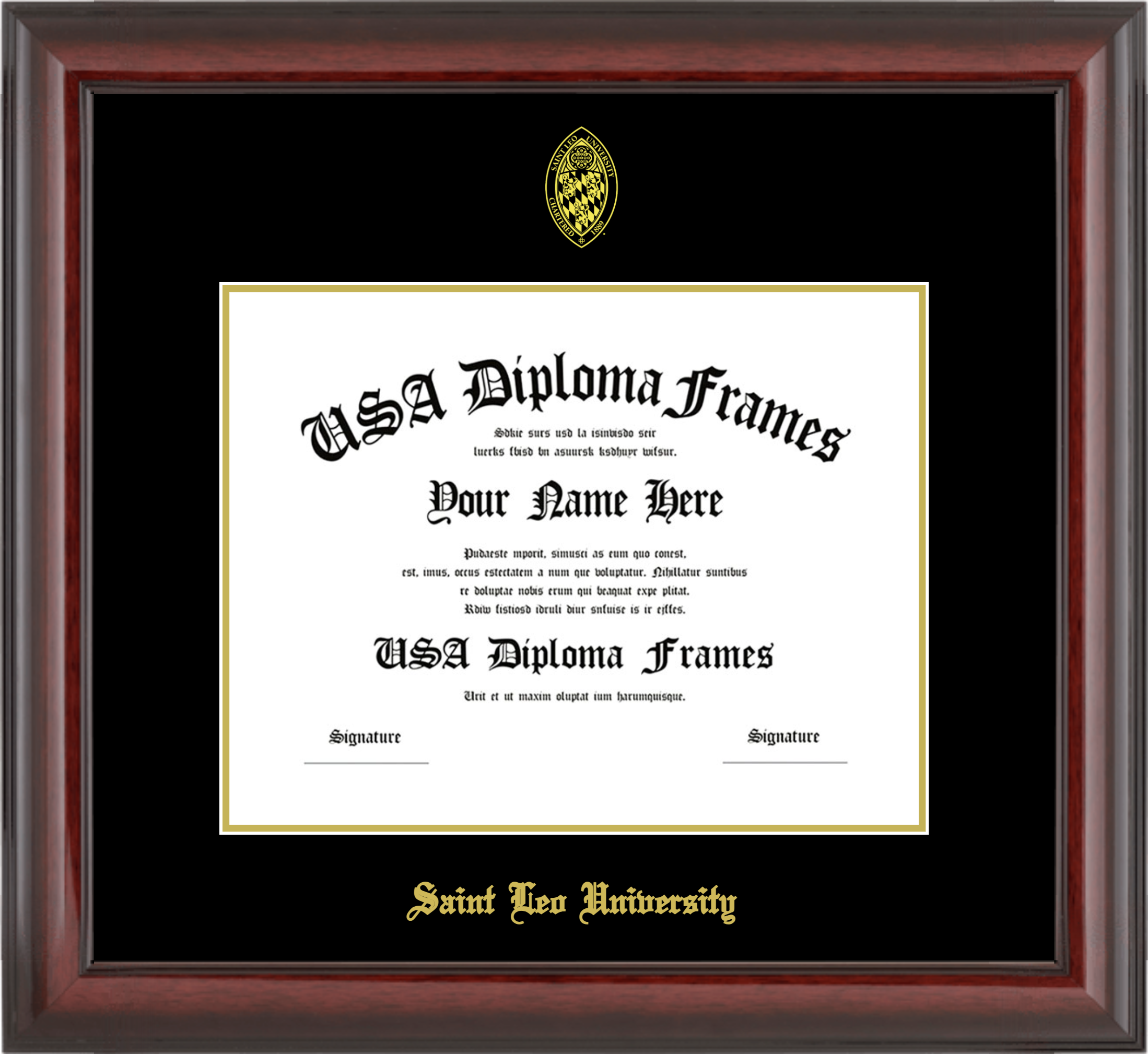 Saint Leo University Diploma Frame – Cherry Mahogany Glossy – Black and Gold Mat