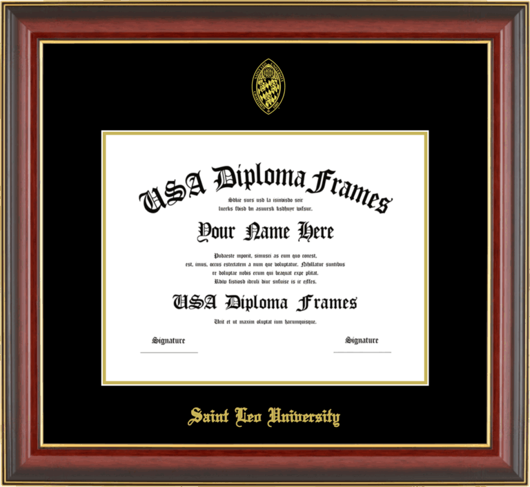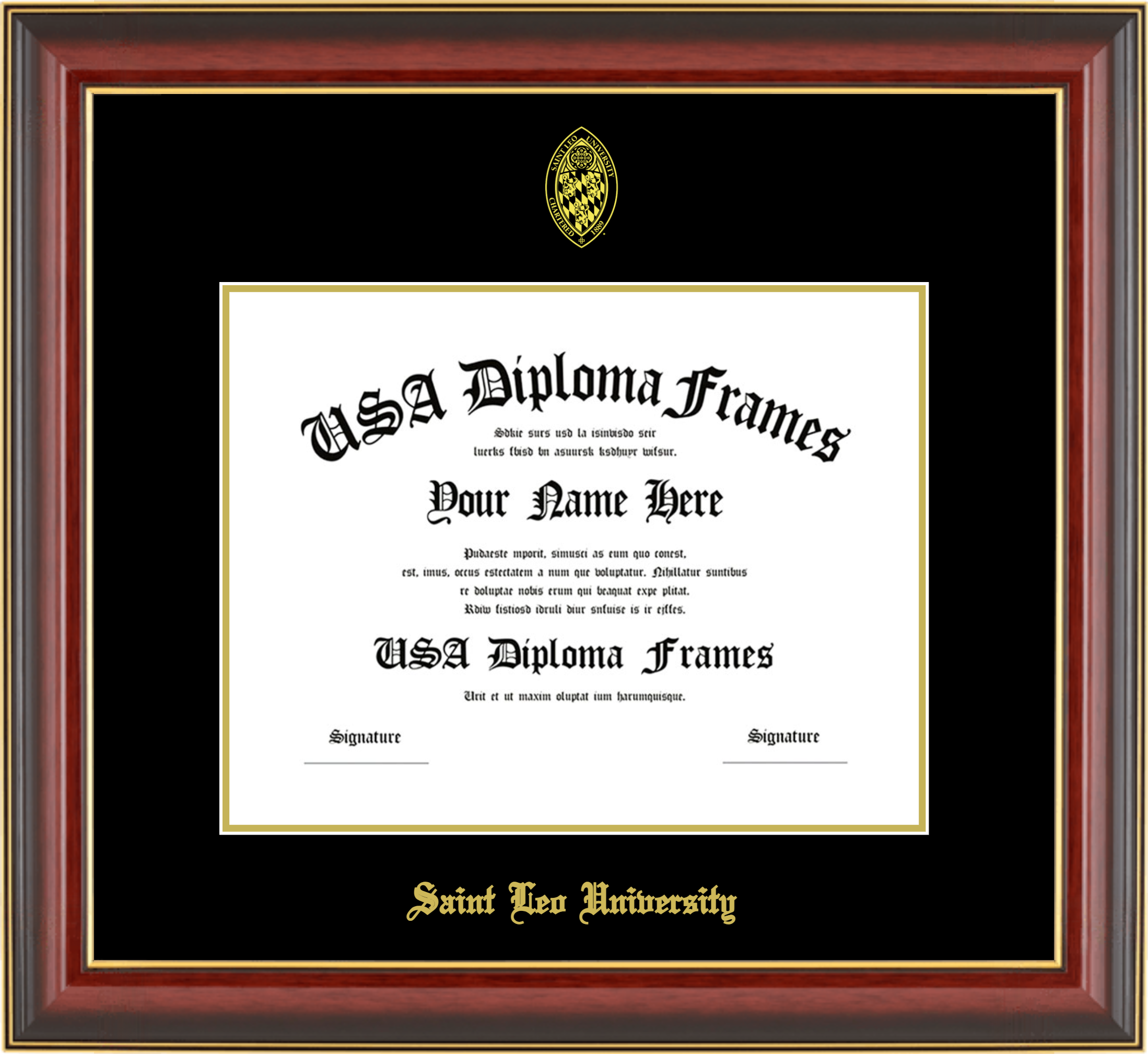 Saint Leo University Diploma Frame – Cherry Mahogany Gold Trim Glossy – Black and Gold Mat
