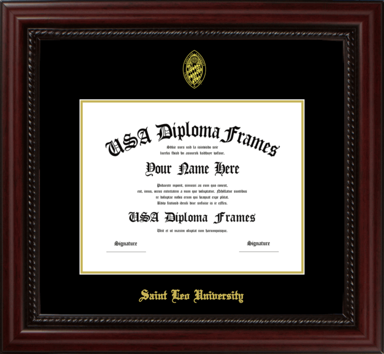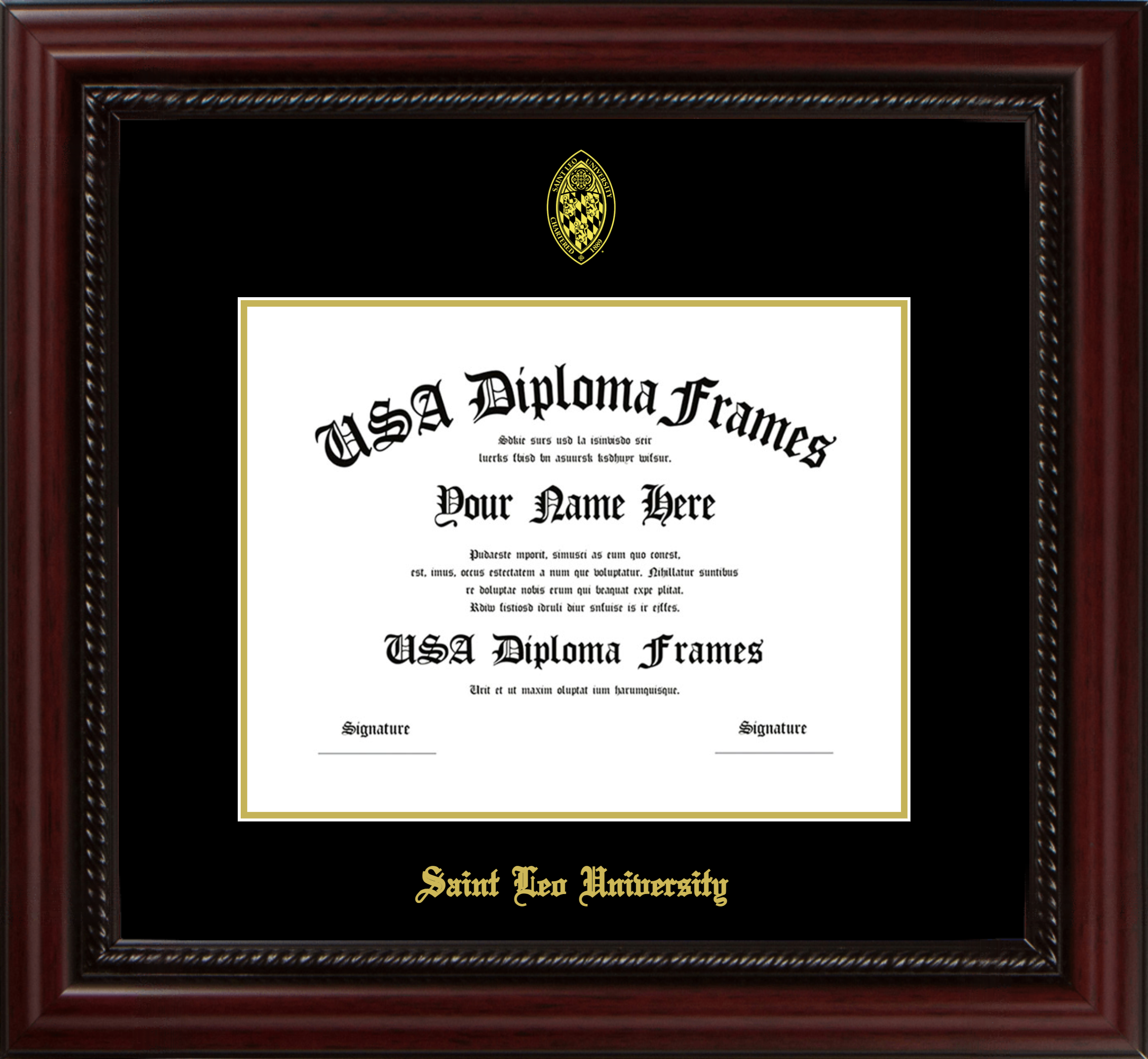 Saint Leo University Diploma Frame – Executive Cherry Rope – Black and Gold Mat
