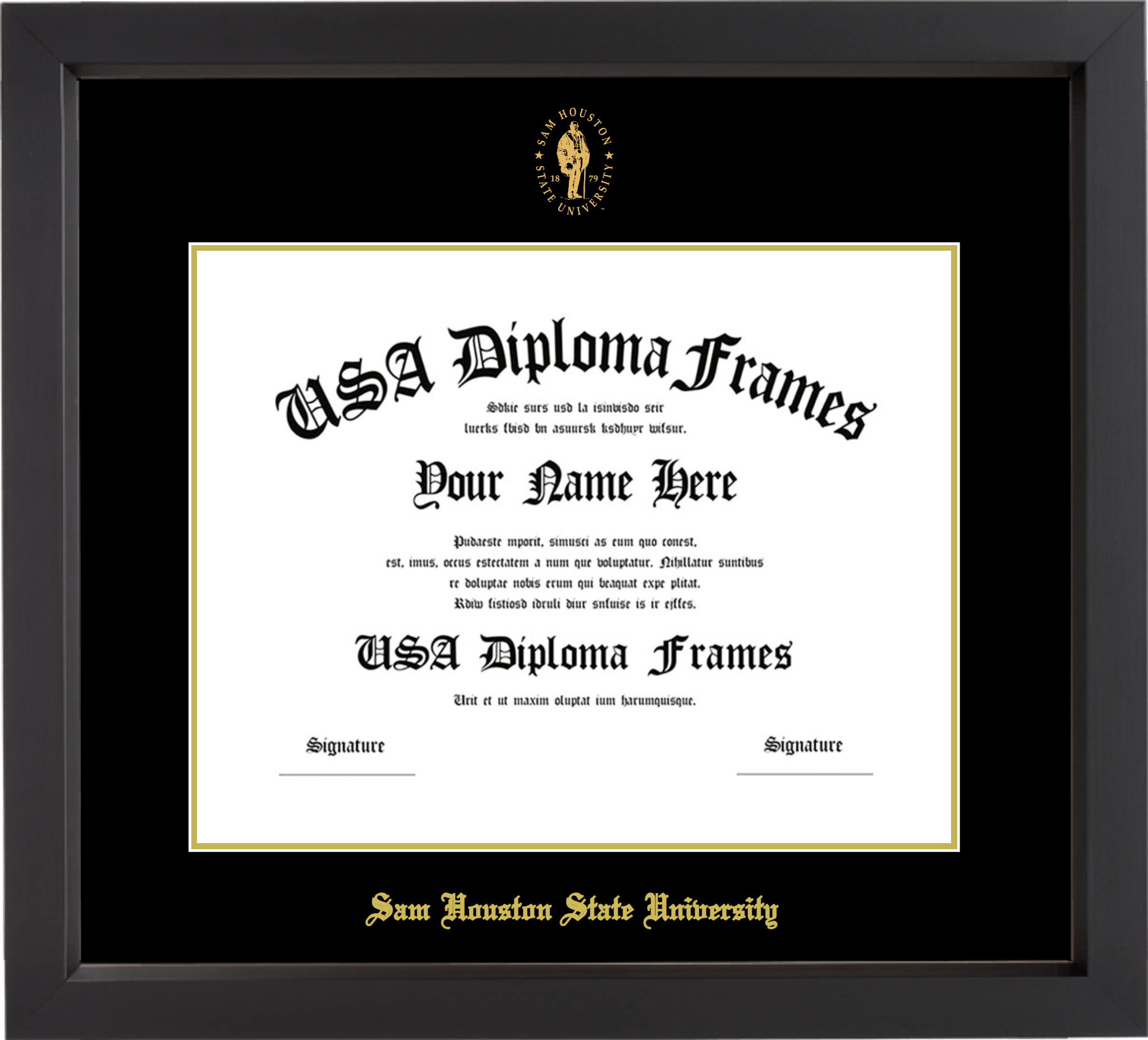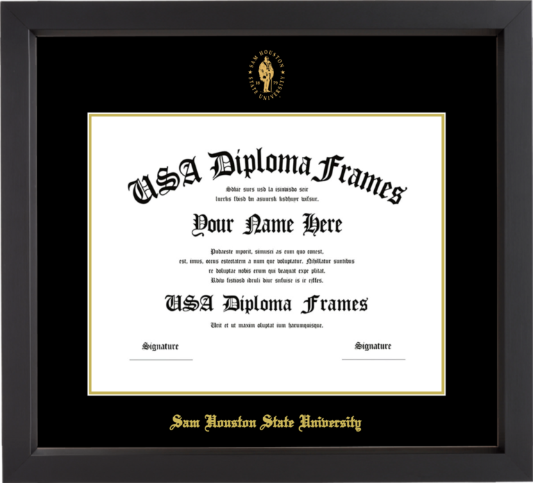 Sam Houston State University Diploma Frame – Black Matte – Black and Gold Mat