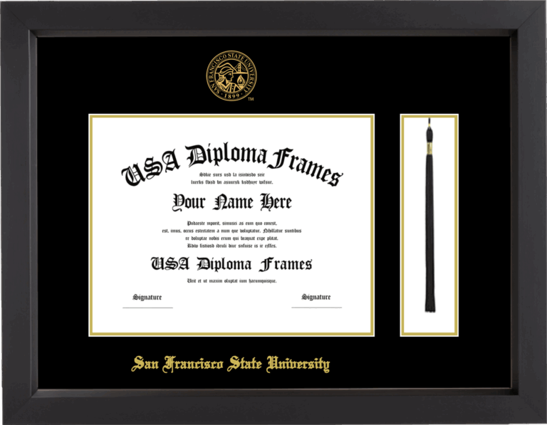 San Francisco State University Diploma Frame with Tassel – Black Matte – Black and Gold Mat