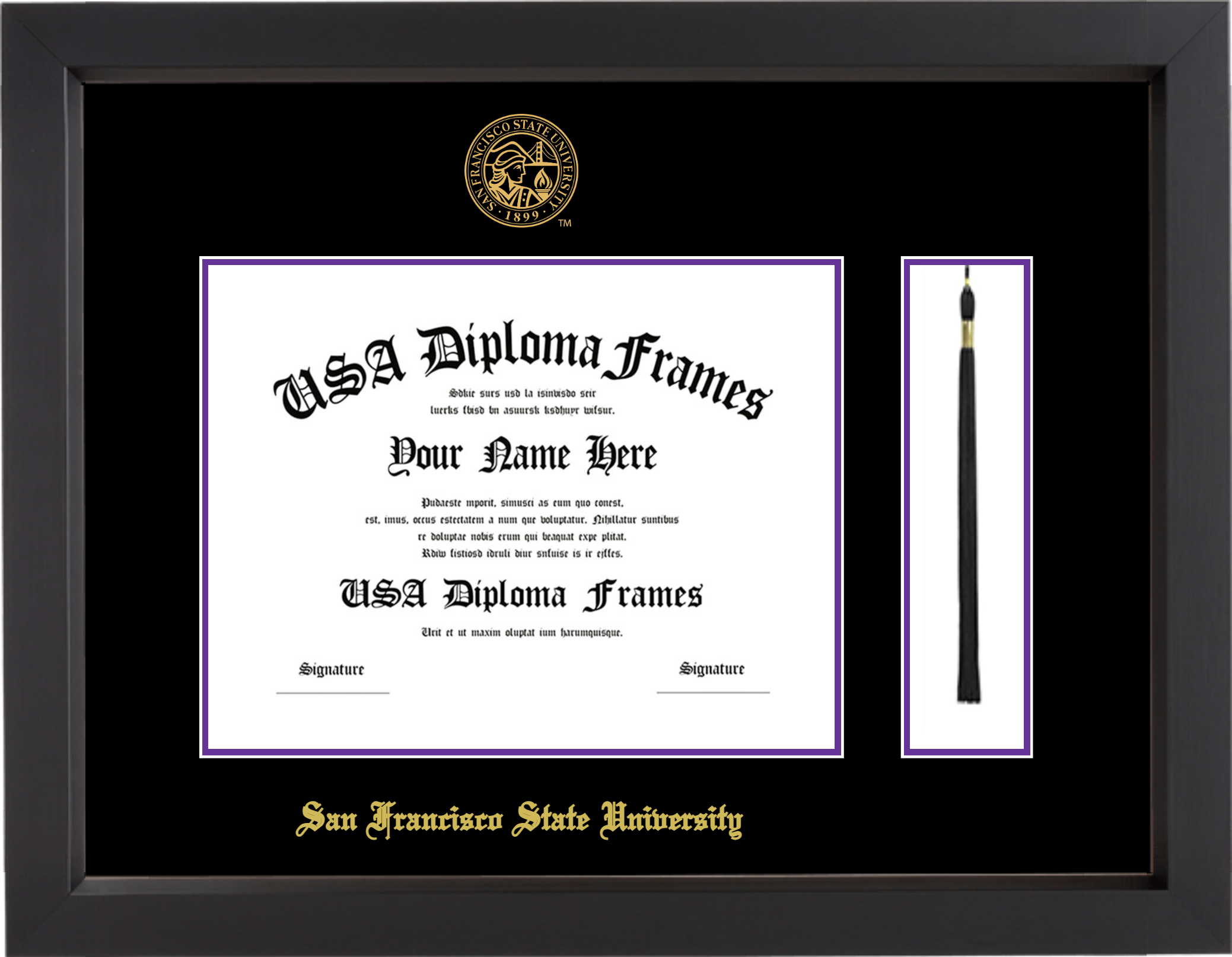 San Francisco State University Diploma Frame with Tassel – Black Matte – Black and Purple Mat