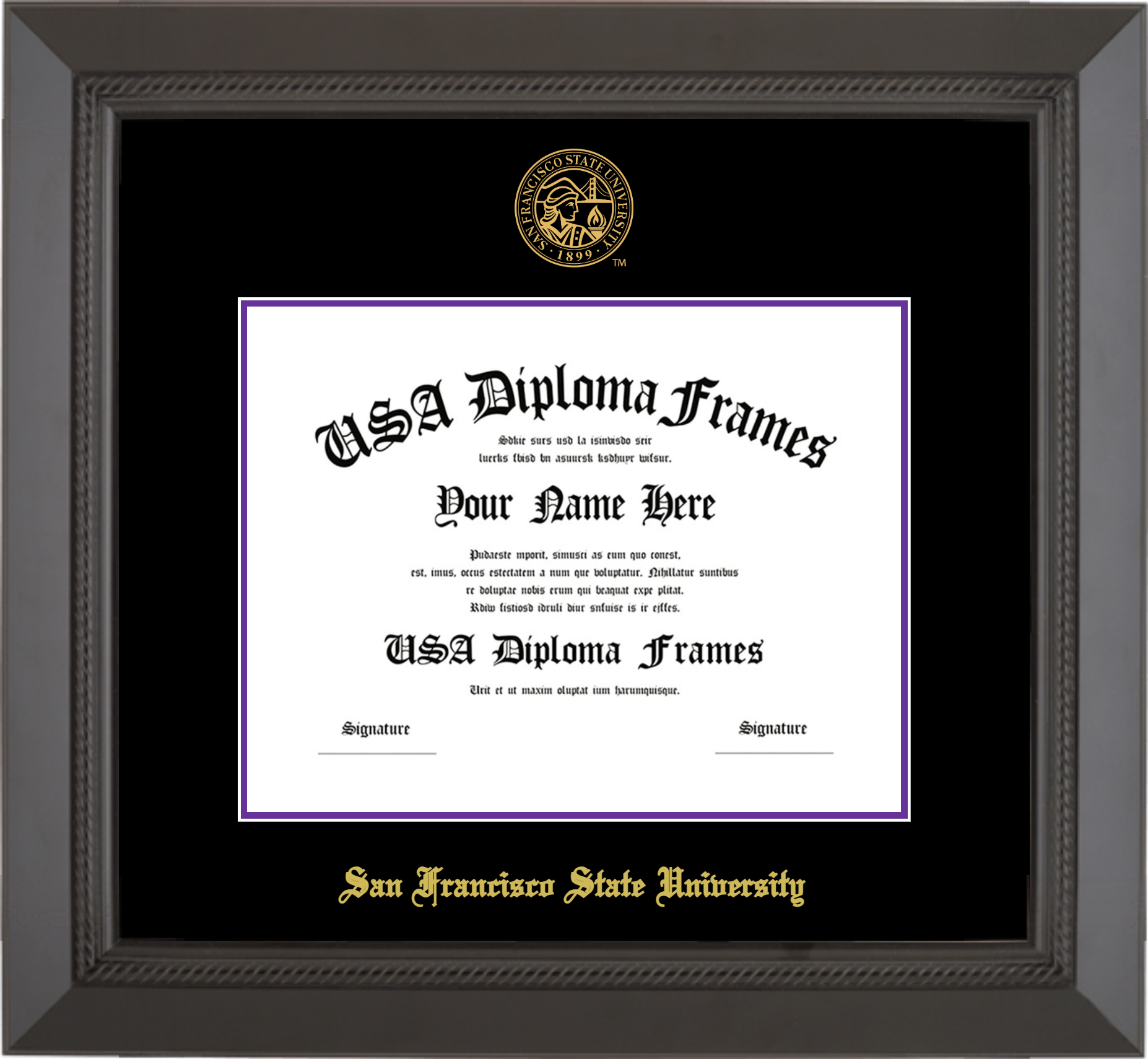 San Francisco State University Diploma Frame – Black Rope – Black and Purple Mat