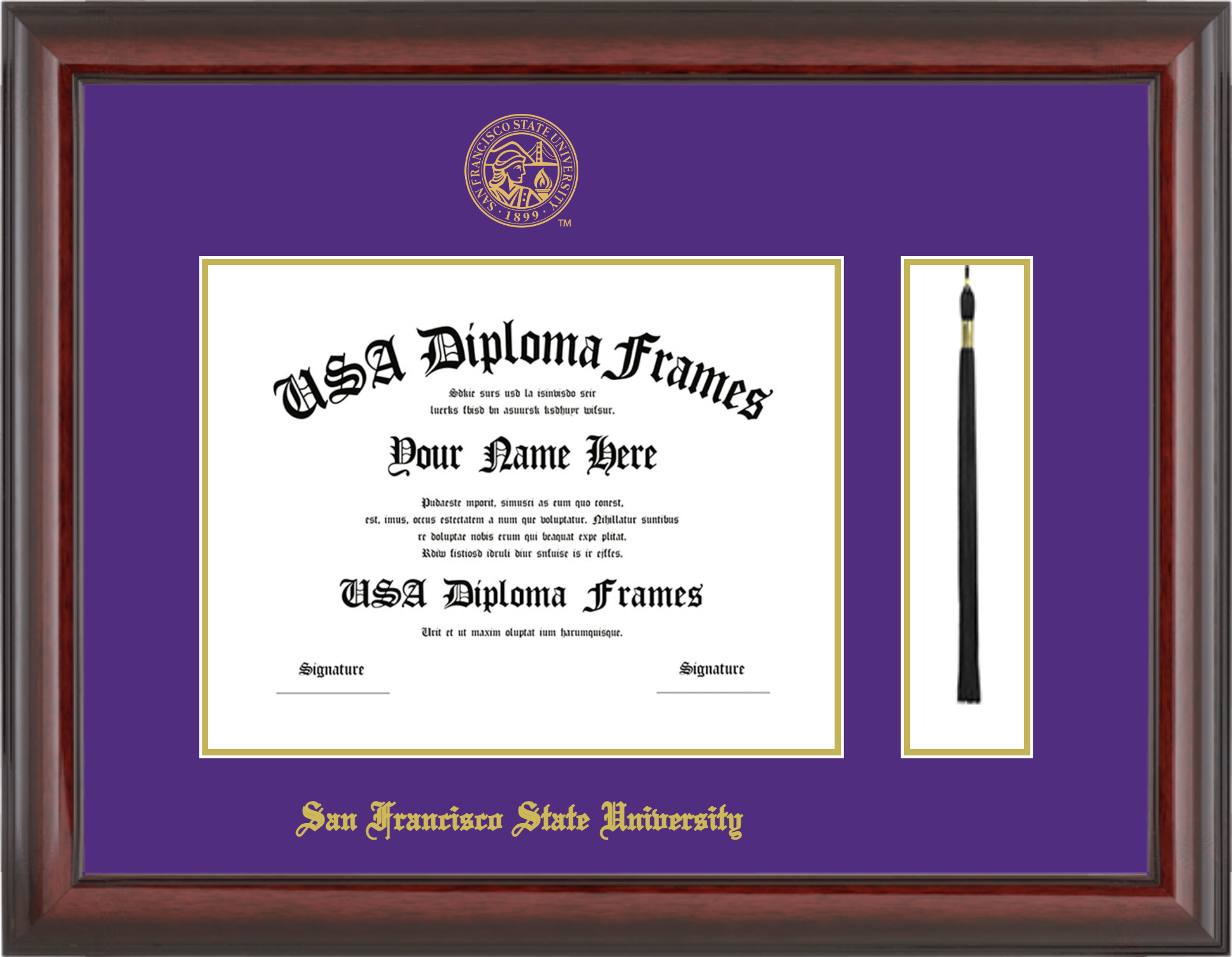 San Francisco State University Diploma Frame with Tassel – Cherry Mahogany Glossy – Purple and Gold Mat