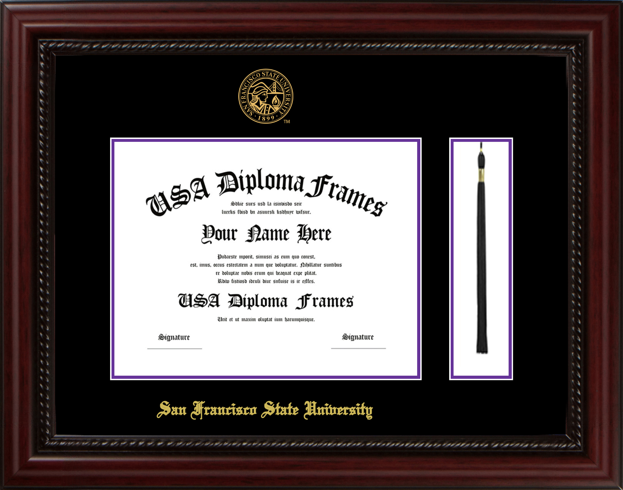 San Francisco State University Diploma Frame with Tassel – Executive Cherry Rope – Black and Purple Mat
