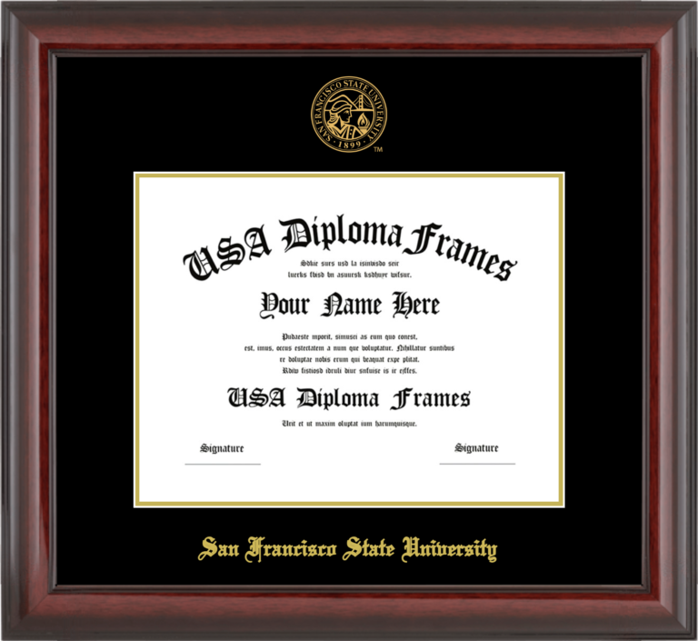 Want to explore more styles? Browse our full range of diploma frame layouts, or visit the San Francisco State University to view options available for your school. Looking for a fully personalized design? Try our custom Frame Builder and create a frame that’s uniquely yours.