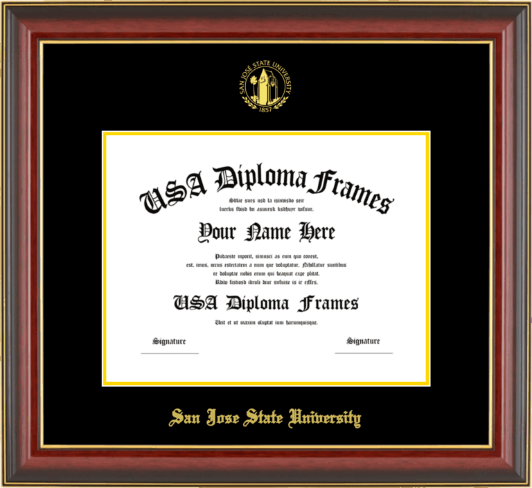 Want to explore more styles? Browse our full range of diploma frame layouts, or visit the San Jose State University to view options available for your school. Looking for a fully personalized design? Try our custom Frame Builder and create a frame that’s uniquely yours.