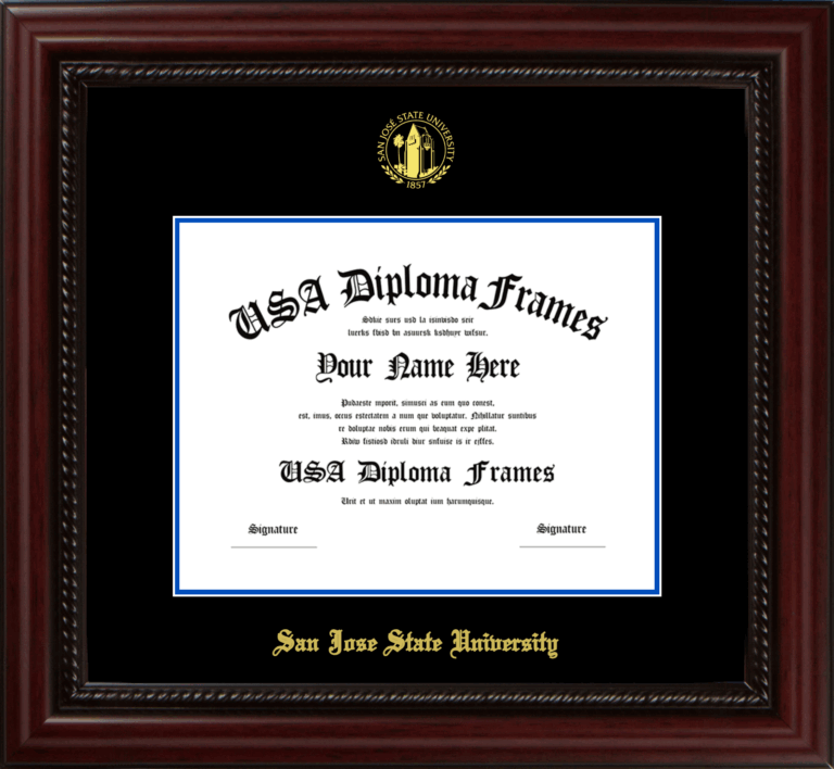 Want to explore more styles? Browse our full range of diploma frame layouts, or visit the San Jose State University to view options available for your school. Looking for a fully personalized design? Try our custom Frame Builder and create a frame that’s uniquely yours.