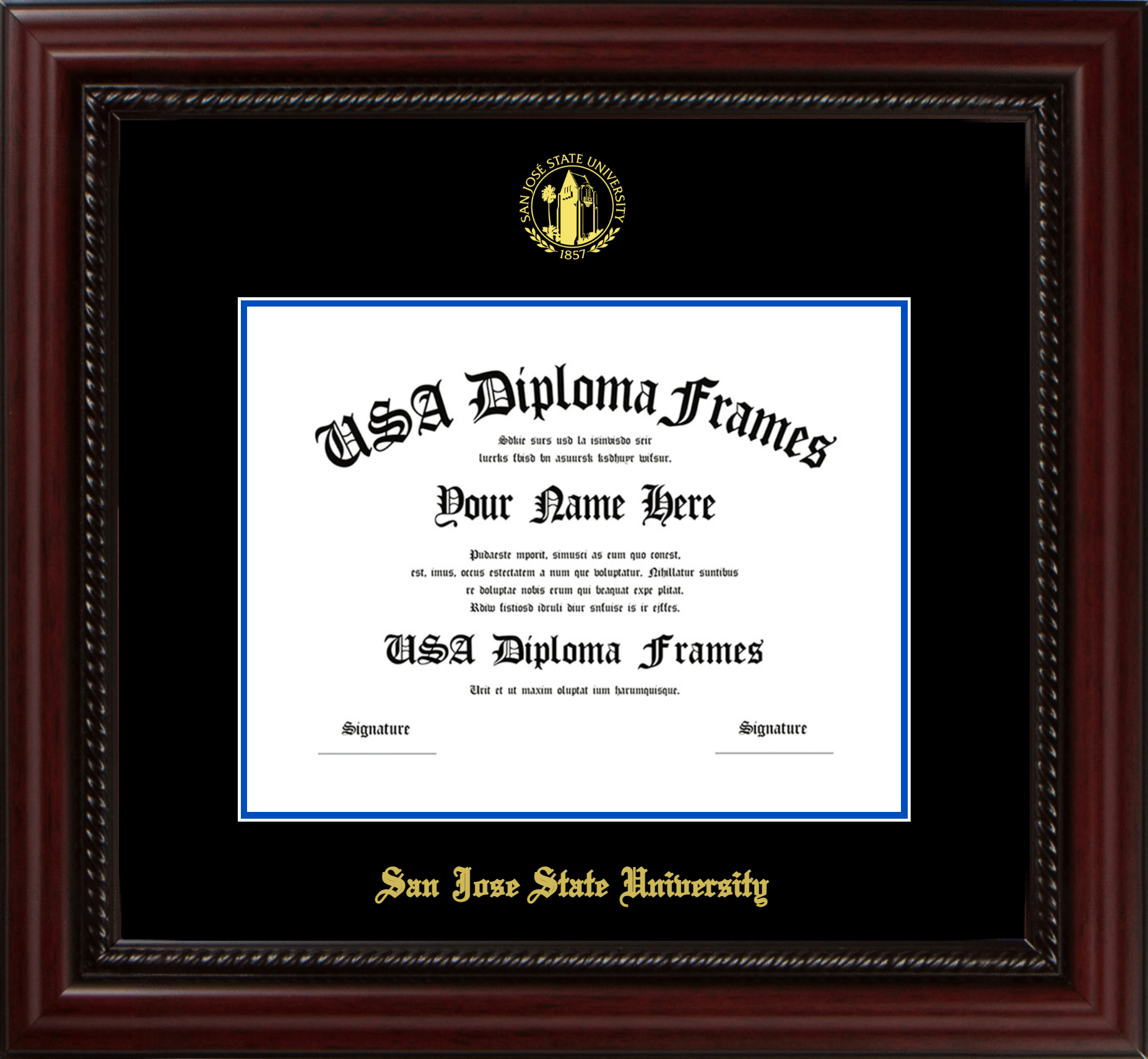 San Jose State University Diploma Frame – Executive Cherry Rope – Black and Royal Blue Mat
