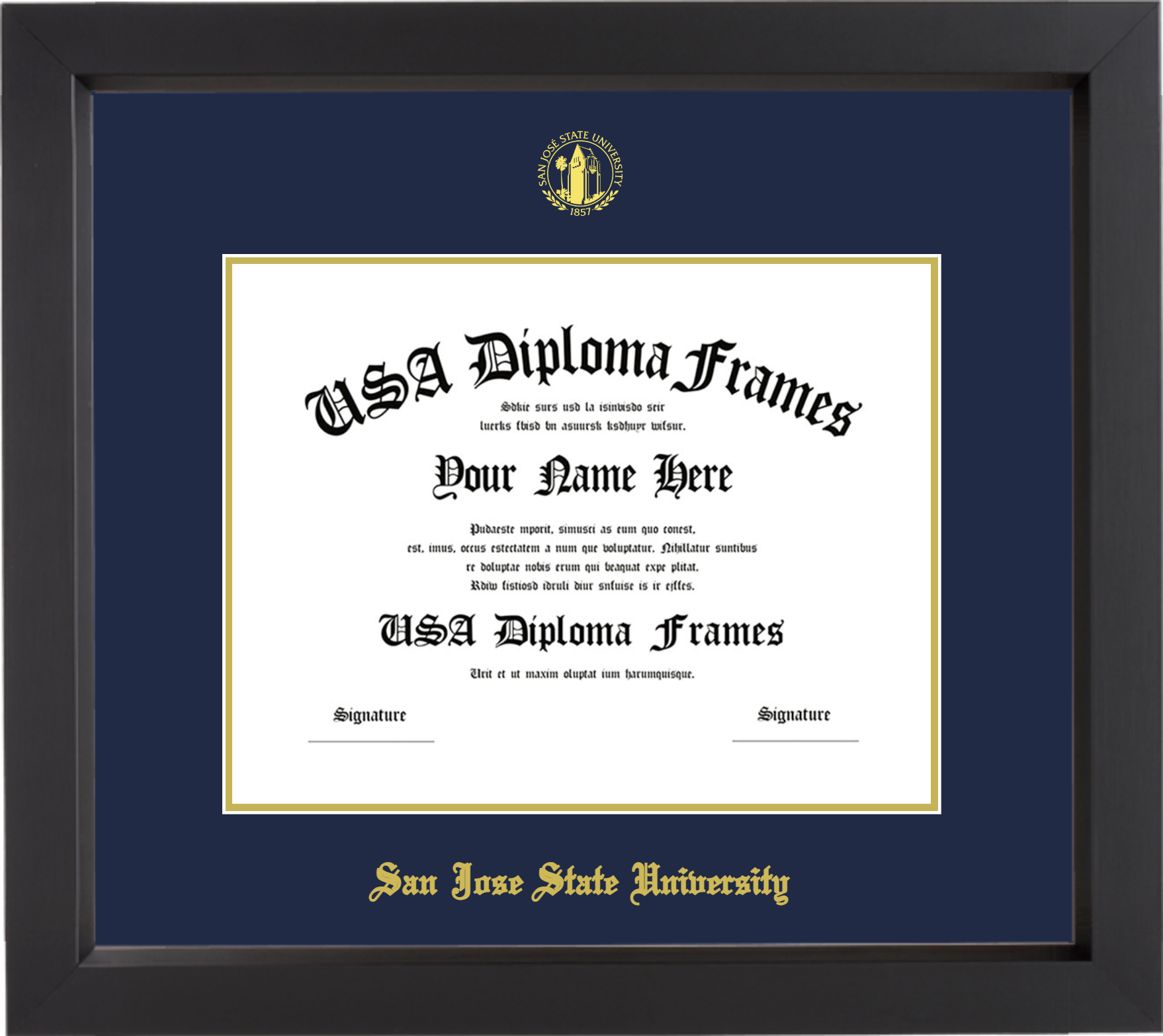 San Jose State University – Single Horizontal Document ( Diploma ) – Black Matte – Navy Mat – Gold Accent Mat – With Seal(University Seal Gold) – With Gold Embossing (San Jose State University)