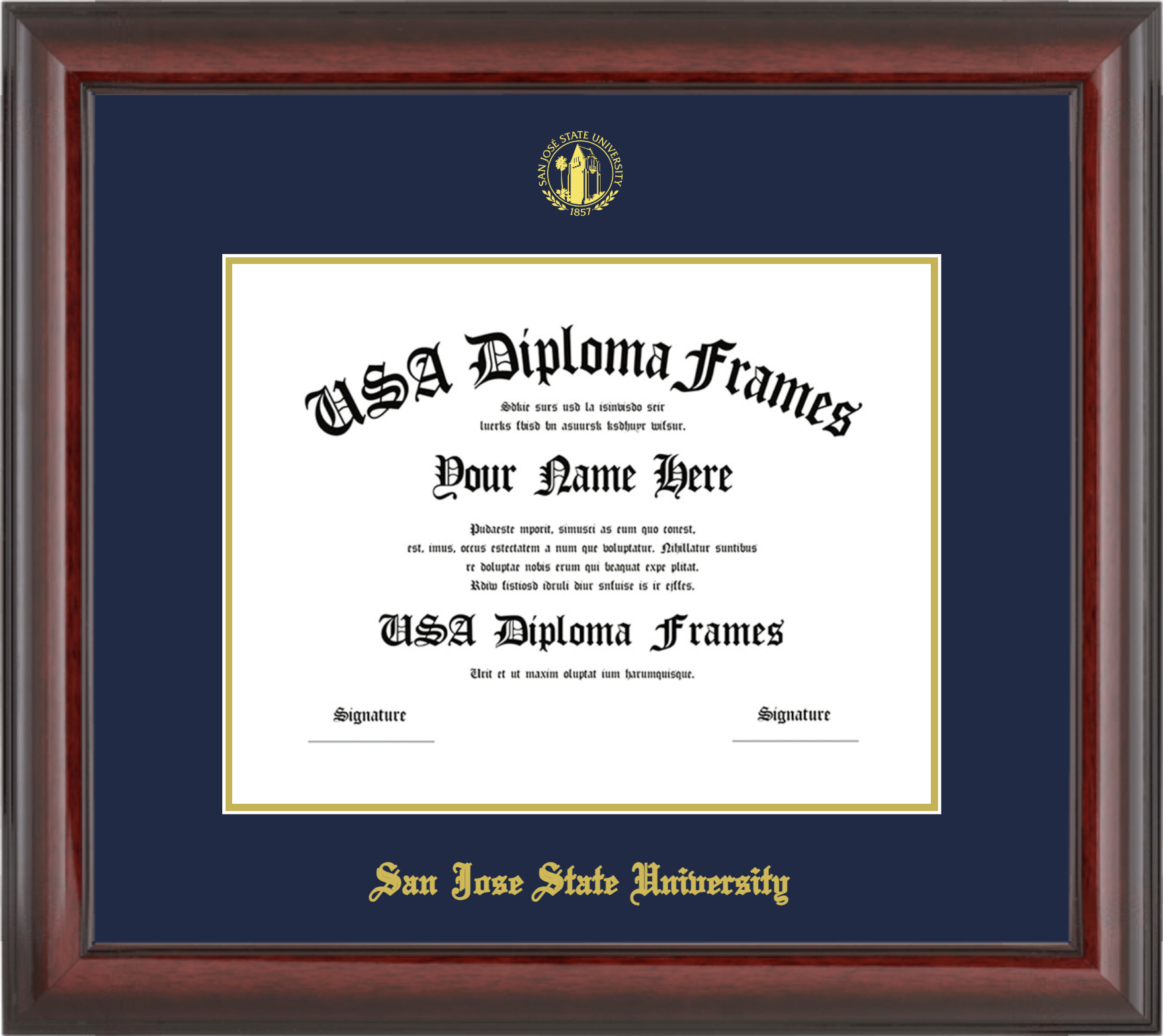 San Jose State University – Single Horizontal Document ( Diploma ) – Cherry Mahogany Glossy – Navy Mat – Gold Accent Mat – With Seal(University Seal Gold) – With Gold Embossing (San Jose State University)