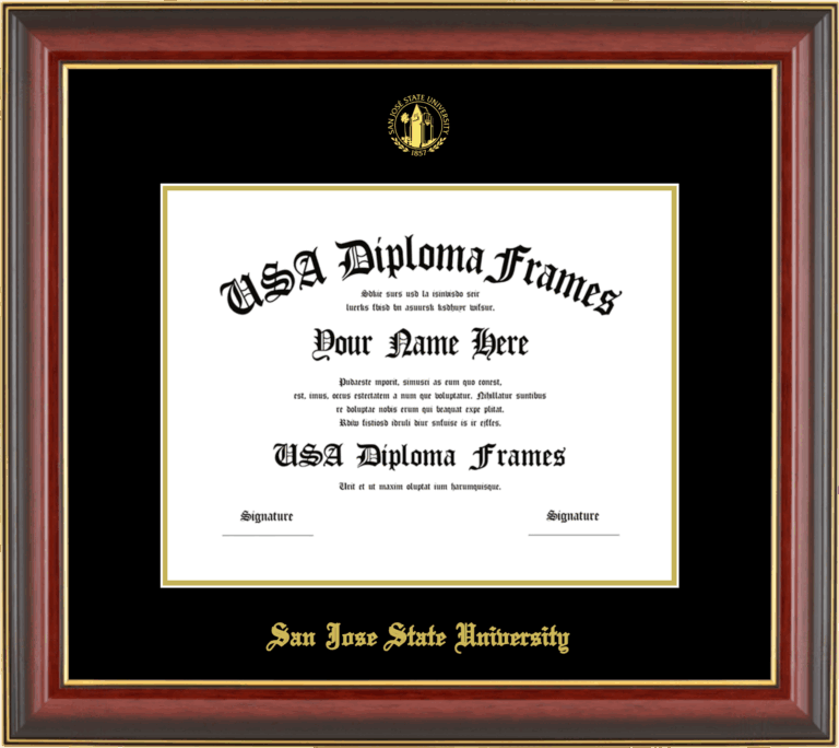 Want to explore more styles? Browse our full range of diploma frame layouts, or visit the San Jose State University to view options available for your school. Looking for a fully personalized design? Try our custom Frame Builder and create a frame that’s uniquely yours.