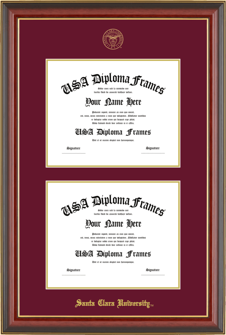 Want to explore more styles? Browse our full range of diploma frame layouts, or visit the Santa Clara University to view options available for your school. Looking for a fully personalized design? Try our custom Frame Builder and create a frame that’s uniquely yours.