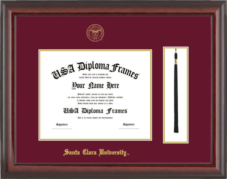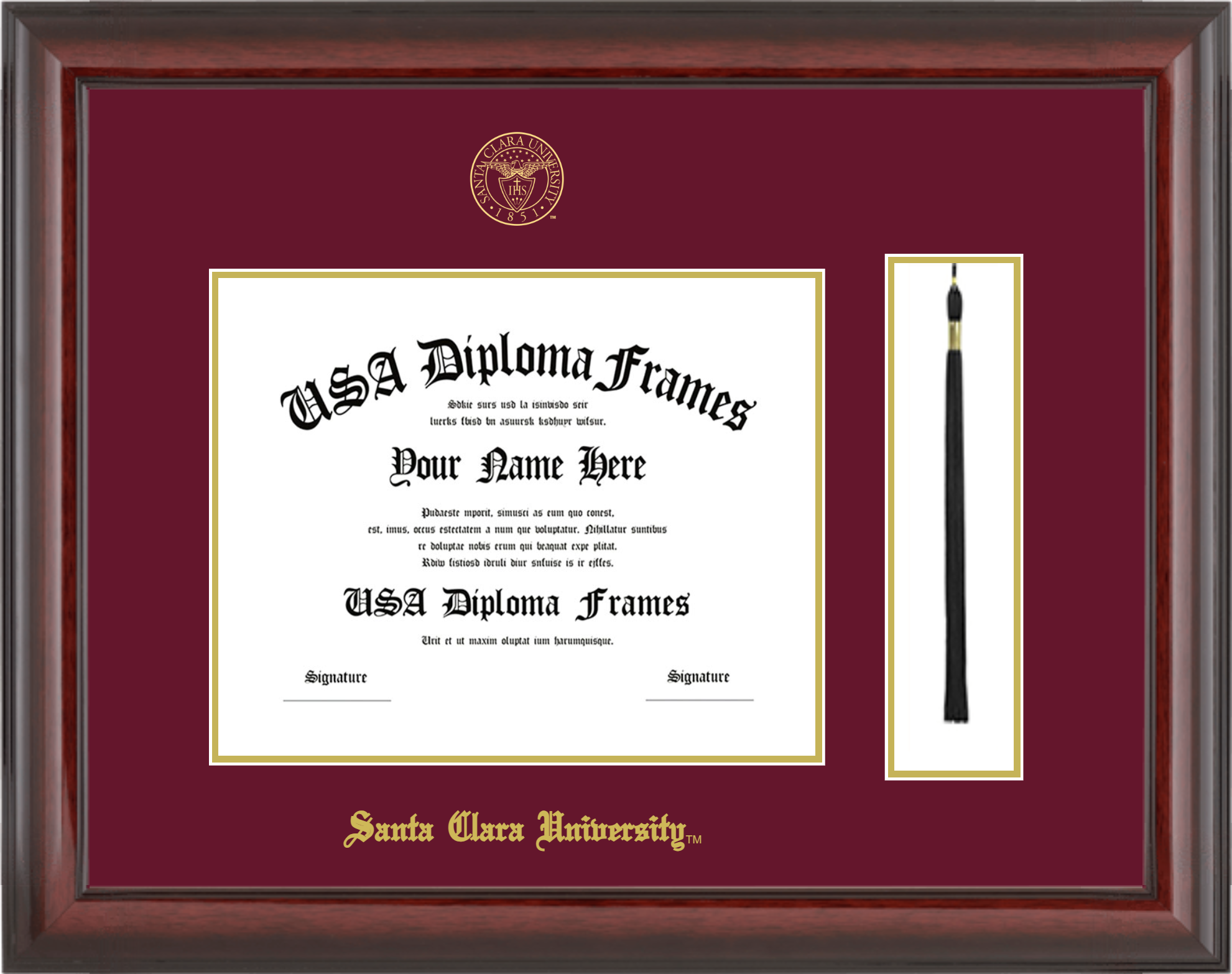 Santa Clara University Diploma Frame with Tassel – Cherry Mahogany Glossy – Maroon and Gold Mat