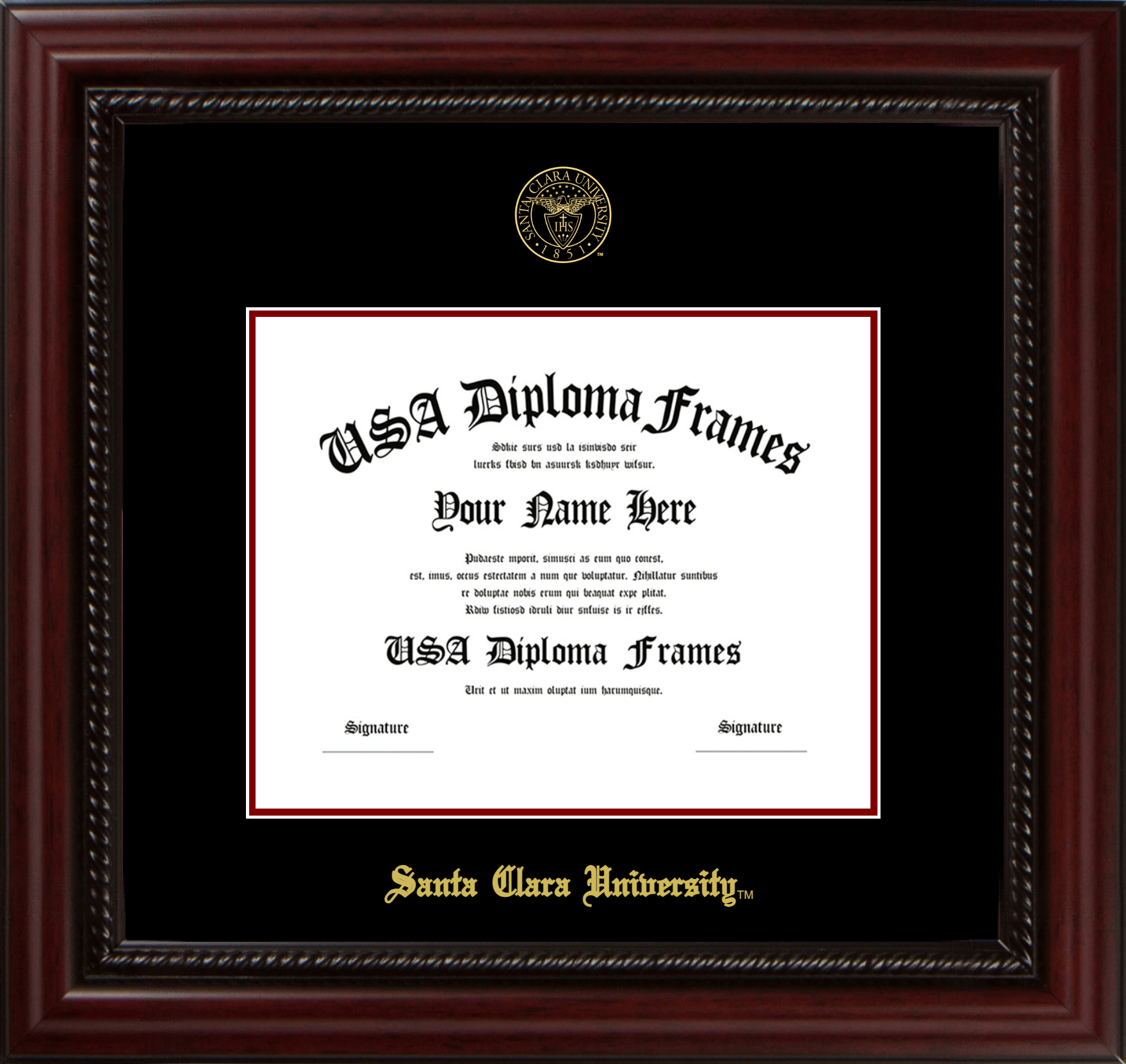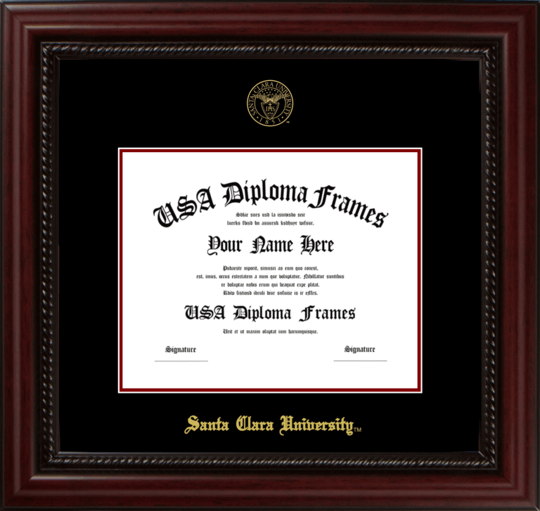 Santa Clara University Diploma Frame – Executive Cherry Rope – Black and Maroon Mat