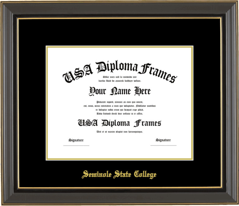Seminole State College Diploma Frame – Black Gold Trim Glossy – Black and Gold Mat