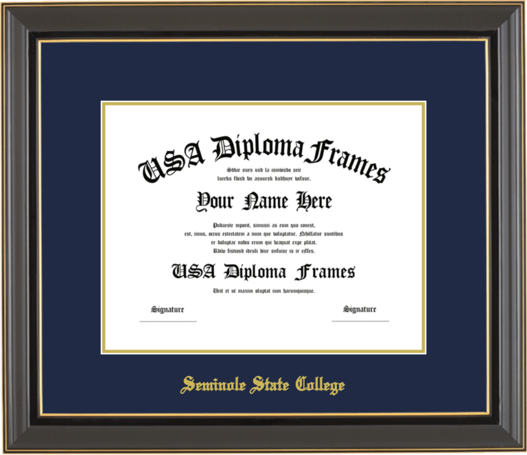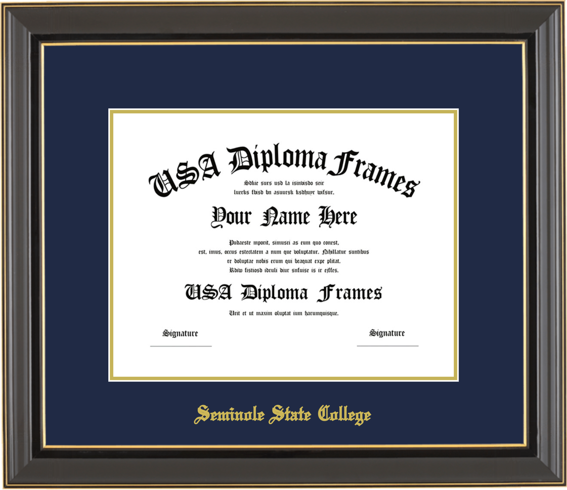 Seminole State College – Single Horizontal Document ( 8 1/2″x11″ ) – Black Gold Trim Glossy – Navy Mat – Gold Accent Mat – With Gold Embossing (Seminole State College)